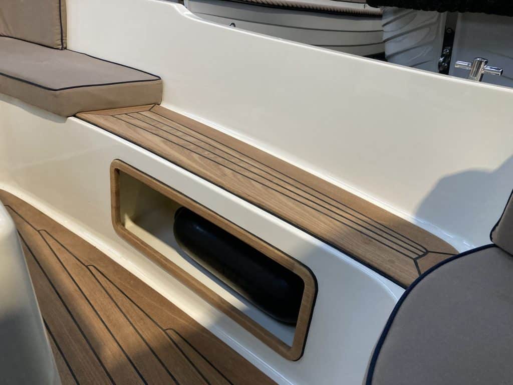 Teak op motorkist.