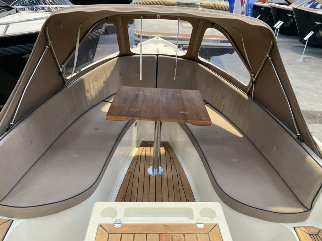 Een comfortabele sloep met veel bergruimte. De rondzit voorin het schip is uitgevoerd met een weg neembaar zonnebed.