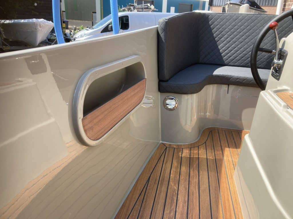 Deze prachtige Stoer (Stout) 650 sloep staat bekend om zijn goede vaareigenschappen en zijn goede lijnen. Deze Stoer 650 heeft veel binnenruimte en een ruime zit. Daarnaast is ze uitgerust met verschillende optie’s, zo is er een rond zit aanwezig met daarop een luxe kussenset zoals op het zit vlak en voor de rug. Ook is de sloep standaard voorzien van een zonnedek, deze is uitneembaar.