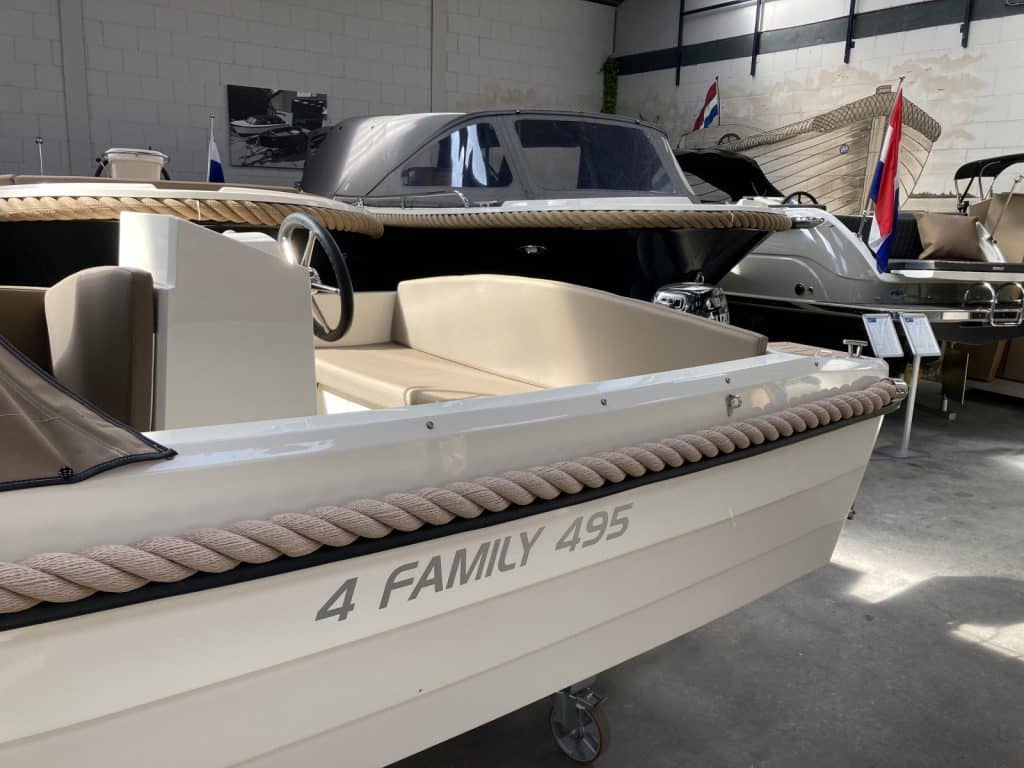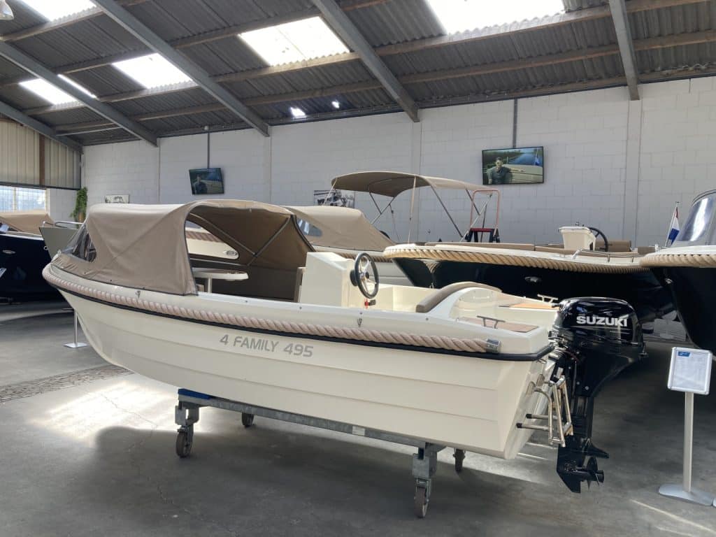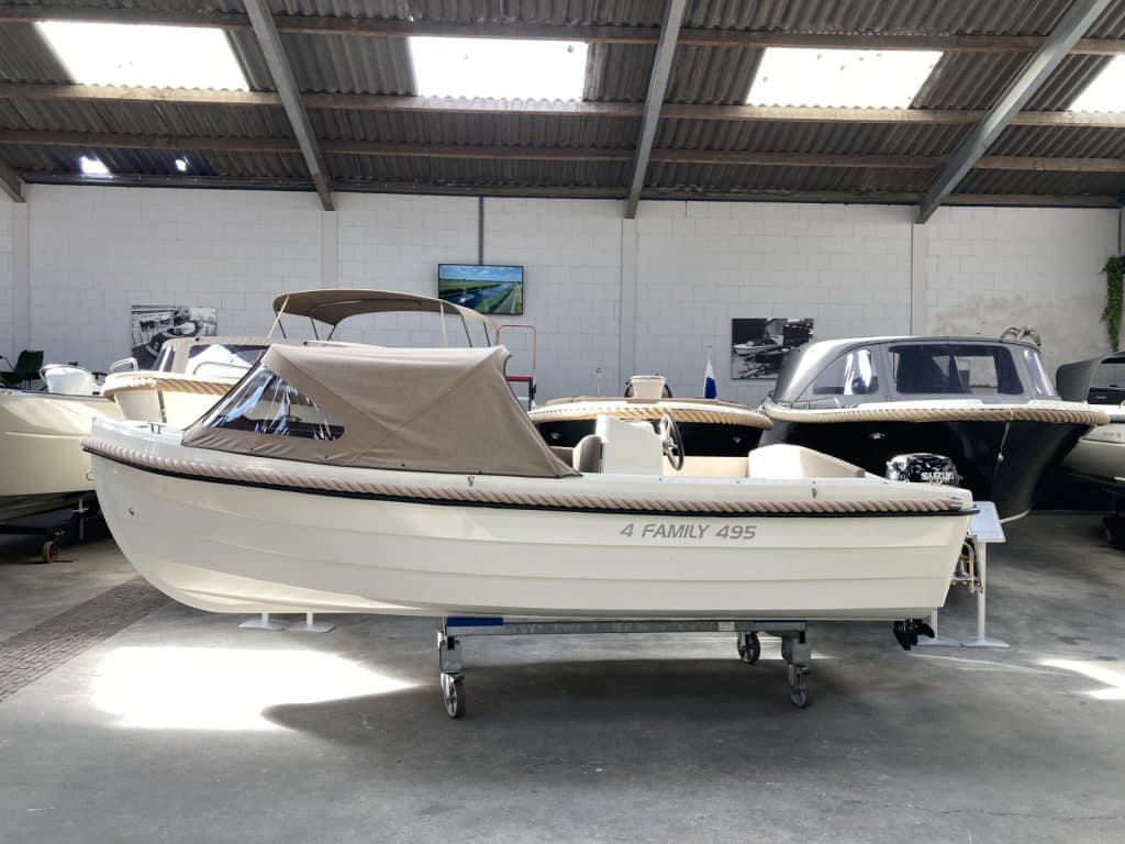 Deze zo goed als nieuwe 4 Family bouwjaar 2022 ) verkeerd in nieuwstaat. De 4 Family is een erg geliefde boot in dit formaat. De 4 Family 495 ziet er niet alleen prachtig uit, maar is ook heel comfortabel en ruim. Ze heeft voorin een uitzonderlijke hoge rugleuning. Dit zit heerlijk, maar is ook heel fijn wanneer je het zonnedek gebruikt. Zo lig je lekker uit de wind.