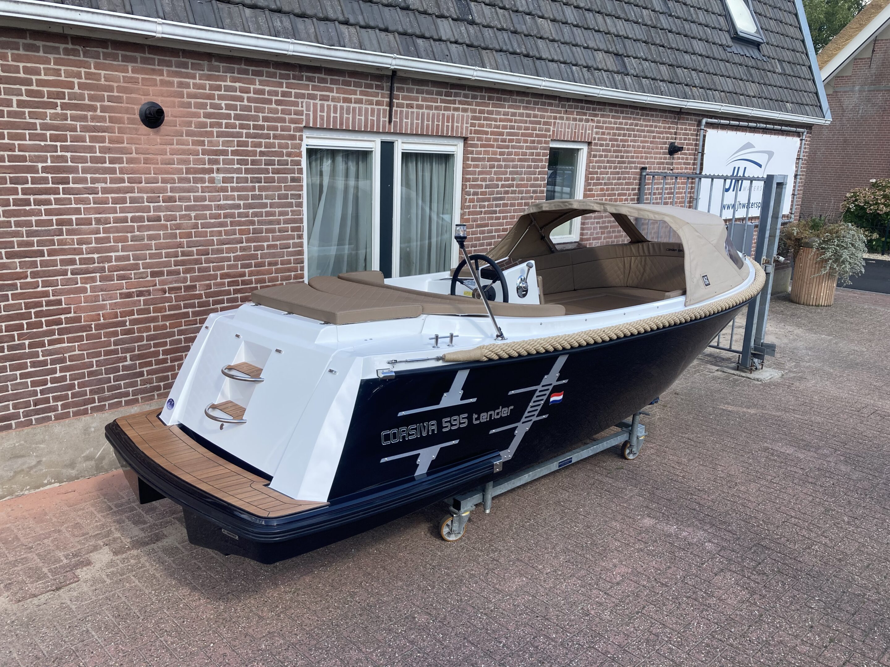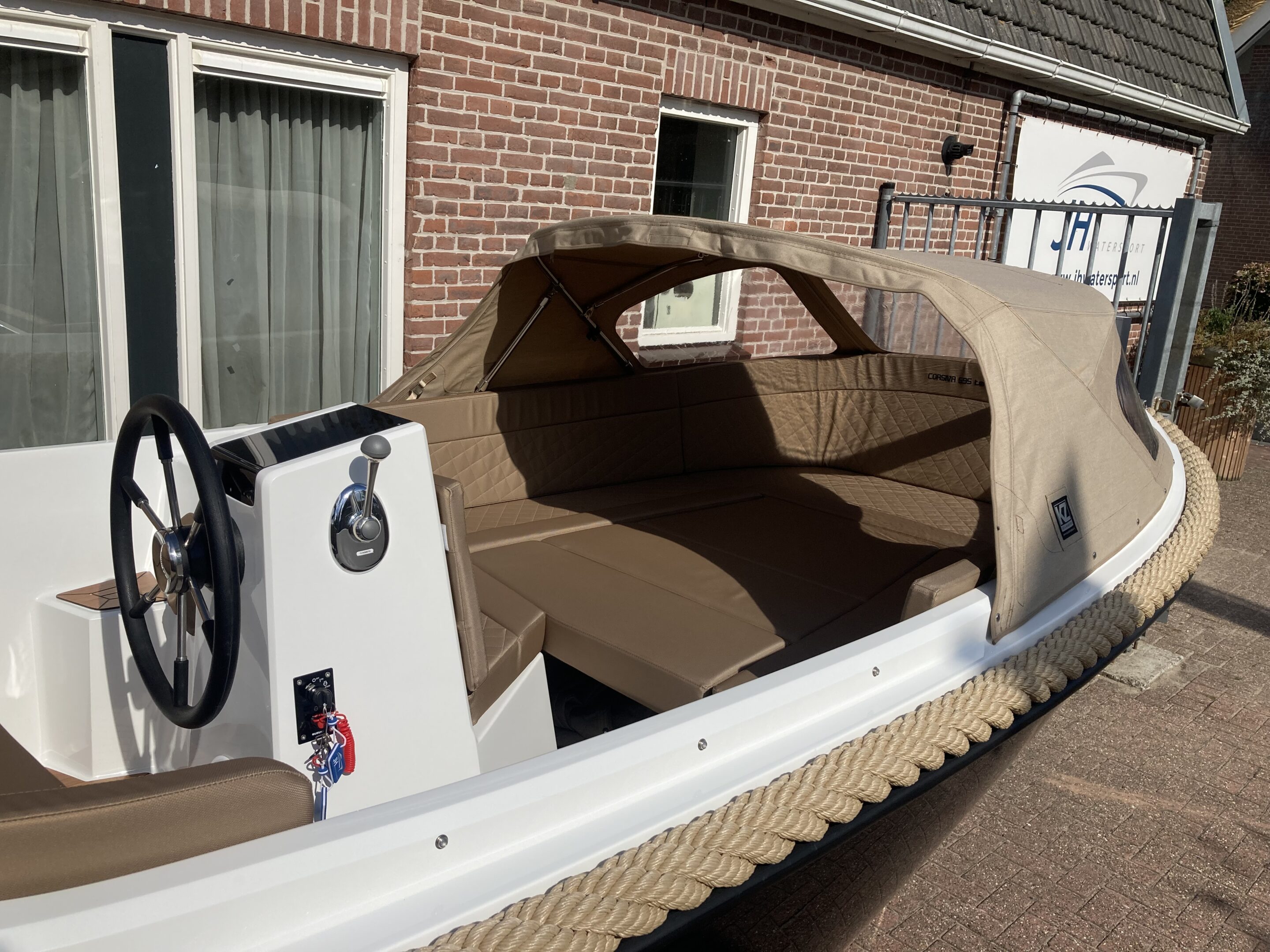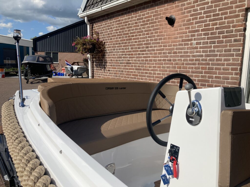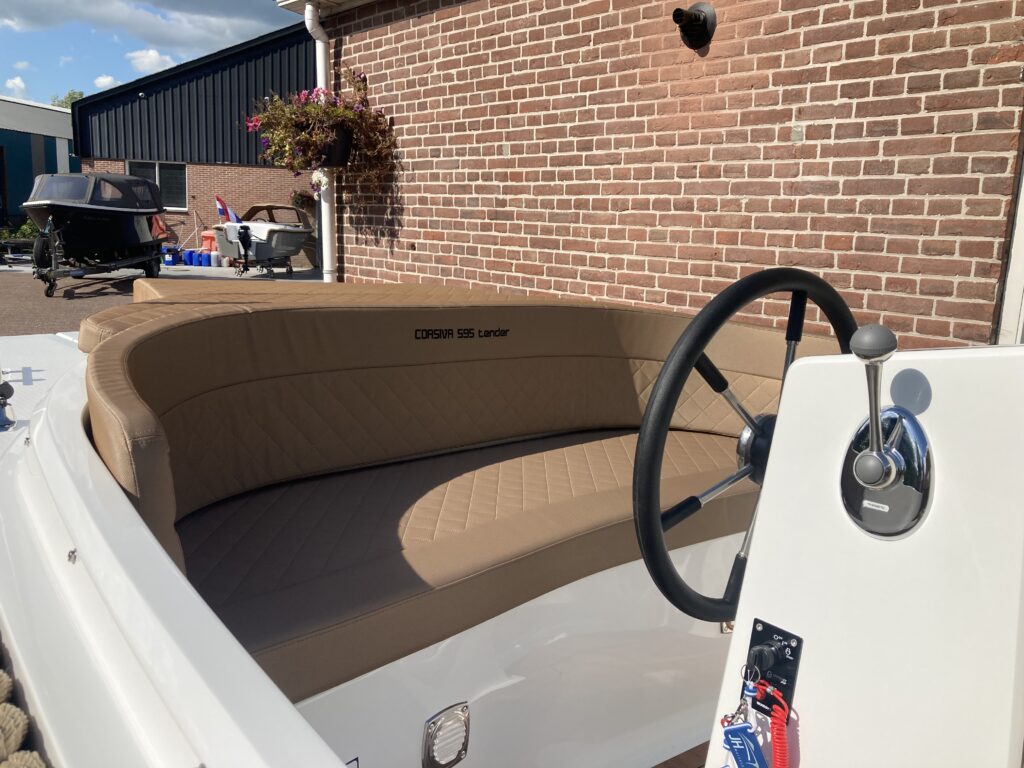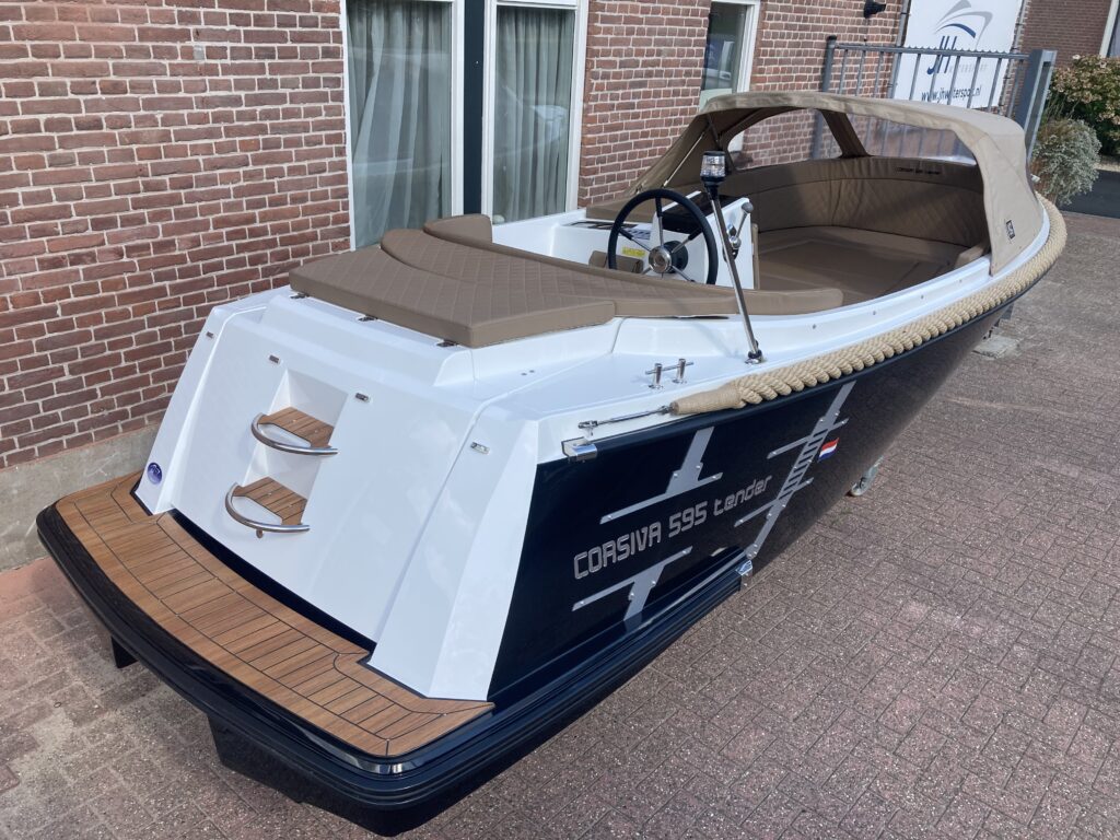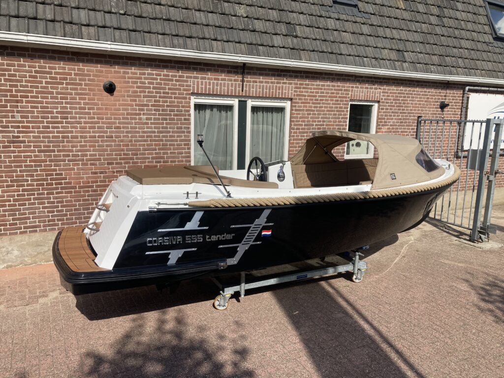 De Corsiva 595 is een sportief en elegant model binnen de Corsiva-familie. Deze strak gelijnde tender wordt aangedreven door een buitenboordmotor in de bun, wat zorgt voor een stille en comfortabele vaarbeleving. Dankzij de ruime rondzit en de verlaagde vloer is de kuip extra diep, wat resulteert in een bijzonder comfortabele en veilige zit. De Corsiva 595 is uitermate geschikt om ontspannen te toeren, maar kan ook vlot varen.