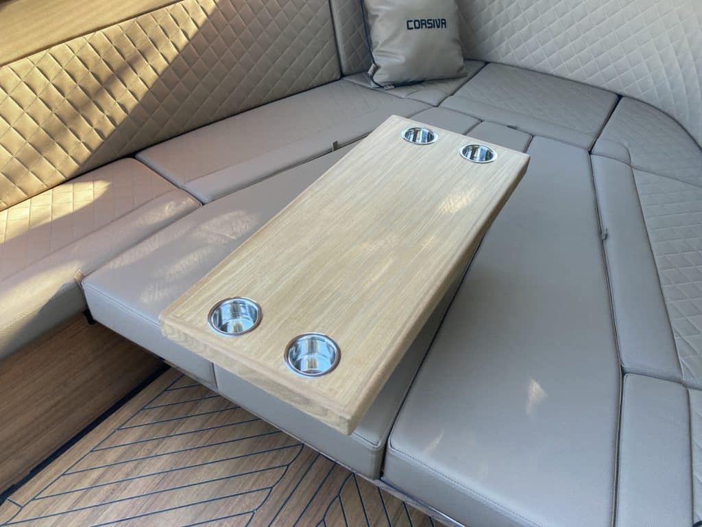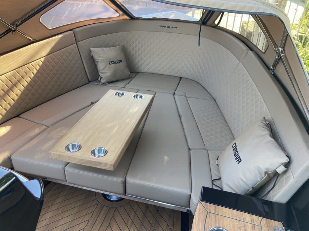 De Corsiva 650 is een boot met extreem veel opbergruimten. Hierdoor kunnen de kussens van het zonnedek makkelijk opgeborgen worden.