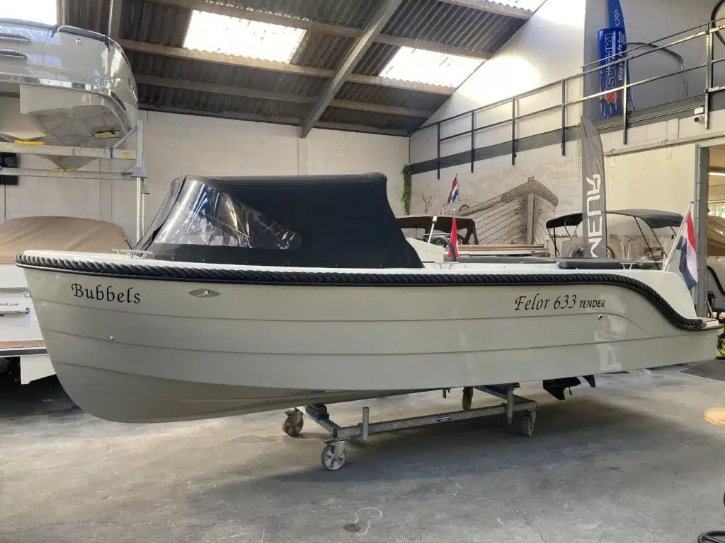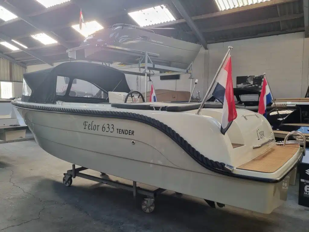Deze zo goed als nieuwe Felor 630 ( bouwjaar 2024 ) verkeerd in Nieuwstaat. De Felor 630 Tender is een erg geliefde tender in dit formaat. De Felor 630 ziet er niet alleen prachtig uit, maar is ook heel comfortabel en ruim. Ze heeft voorin een uitzonderlijke hoge rugleuning. Dit zit heerlijk, maar is ook heel fijn wanneer je het zonnedek gebruikt. Zo lig je lekker uit de wind.
