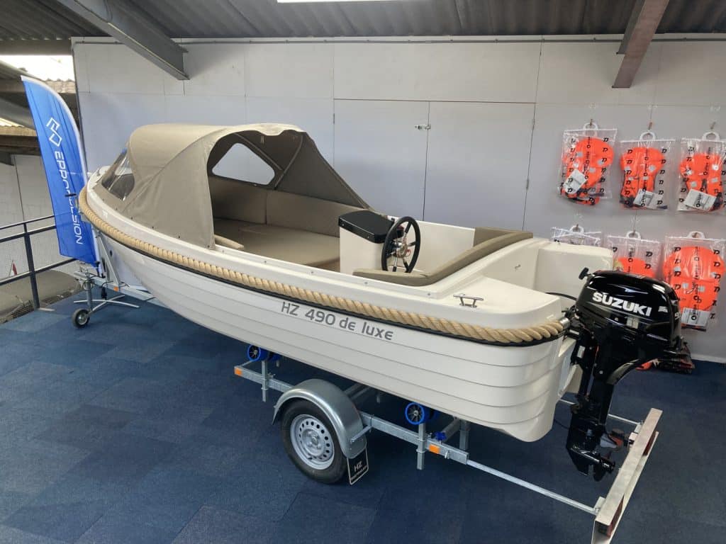 Deze Demo HZ470 verkeerd in Nieuwstaat. De HZ470 is een erg geliefde boot in dit formaat. De HZ470 ziet er niet alleen prachtig uit, maar is ook heel comfortabel en ruim. Ze heeft voorin een uitzonderlijke hoge rugleuning. Dit zit heerlijk, maar is ook heel fijn wanneer je het zonnedek gebruikt. Zo lig je lekker uit de wind.