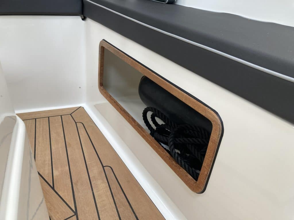 Een comfortabele sloep met veel bergruimte. De rondzit voorin het schip is uitgevoerd met een weg neembaar zonnebed.