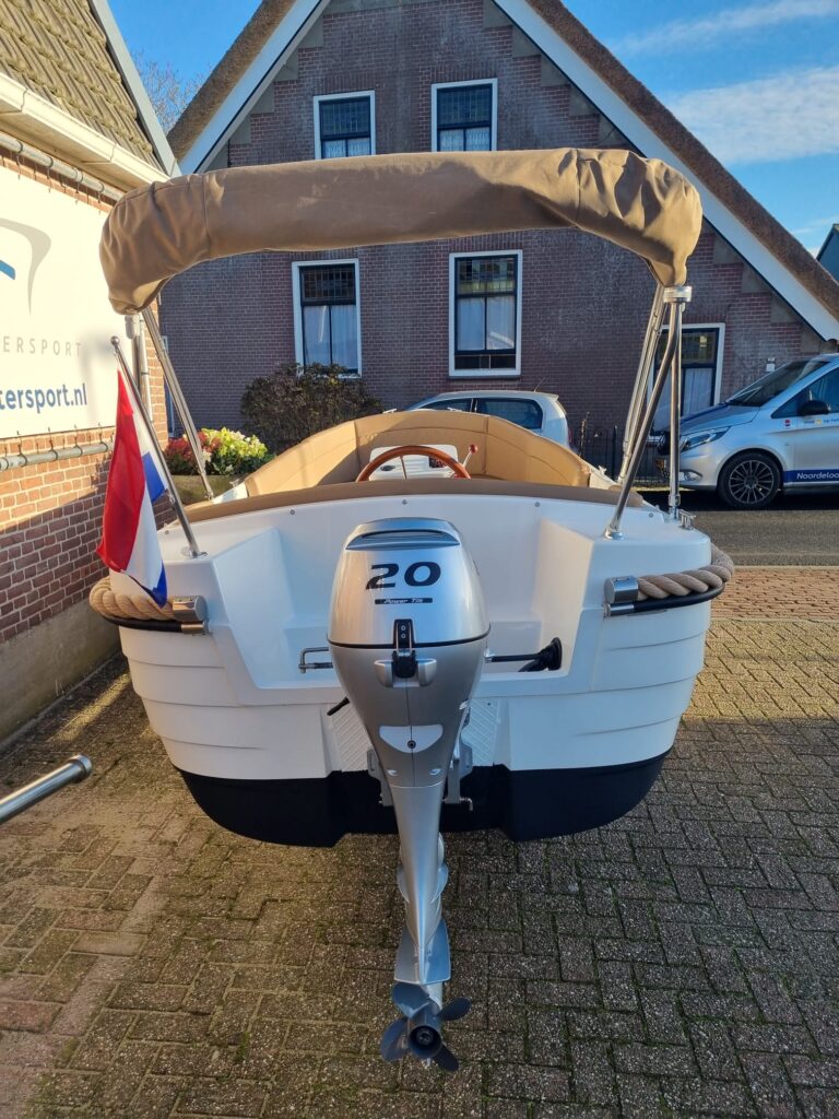 De Maxima 485 is voorzien van een stille Honda 20 pk buitenboordmotor.