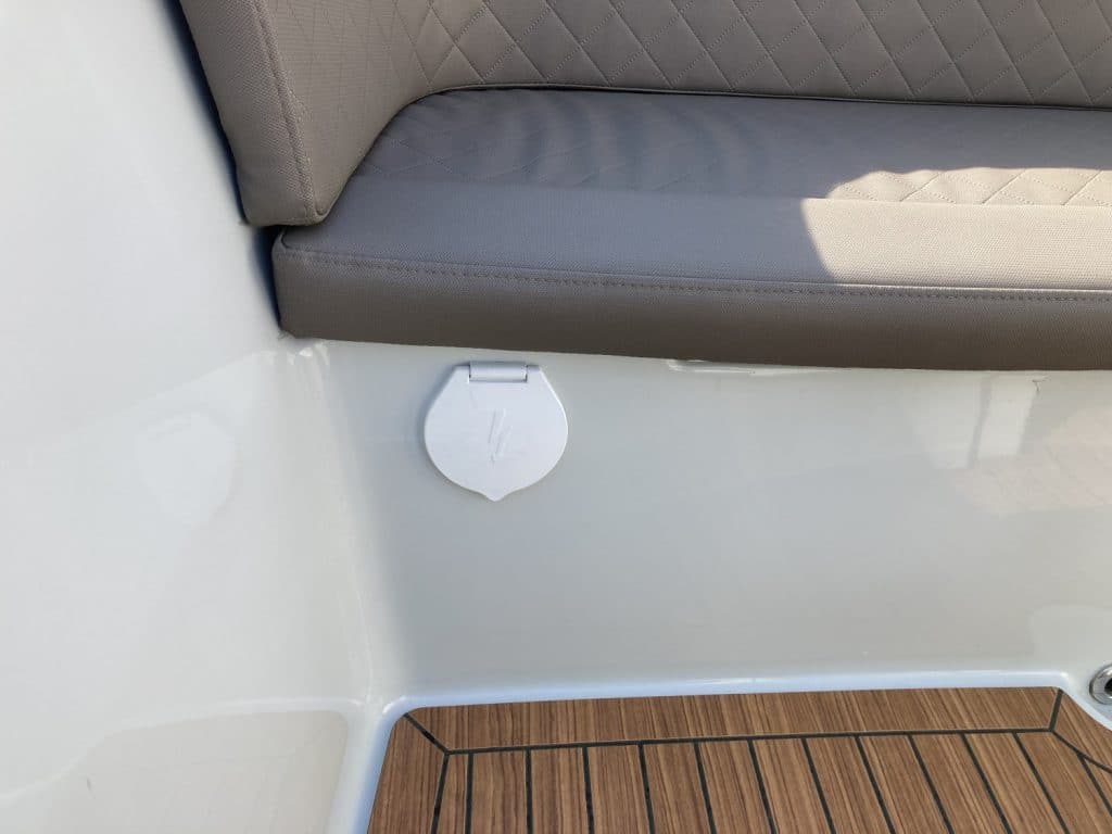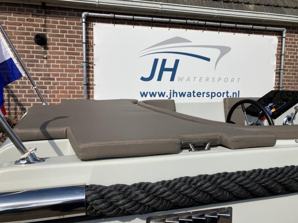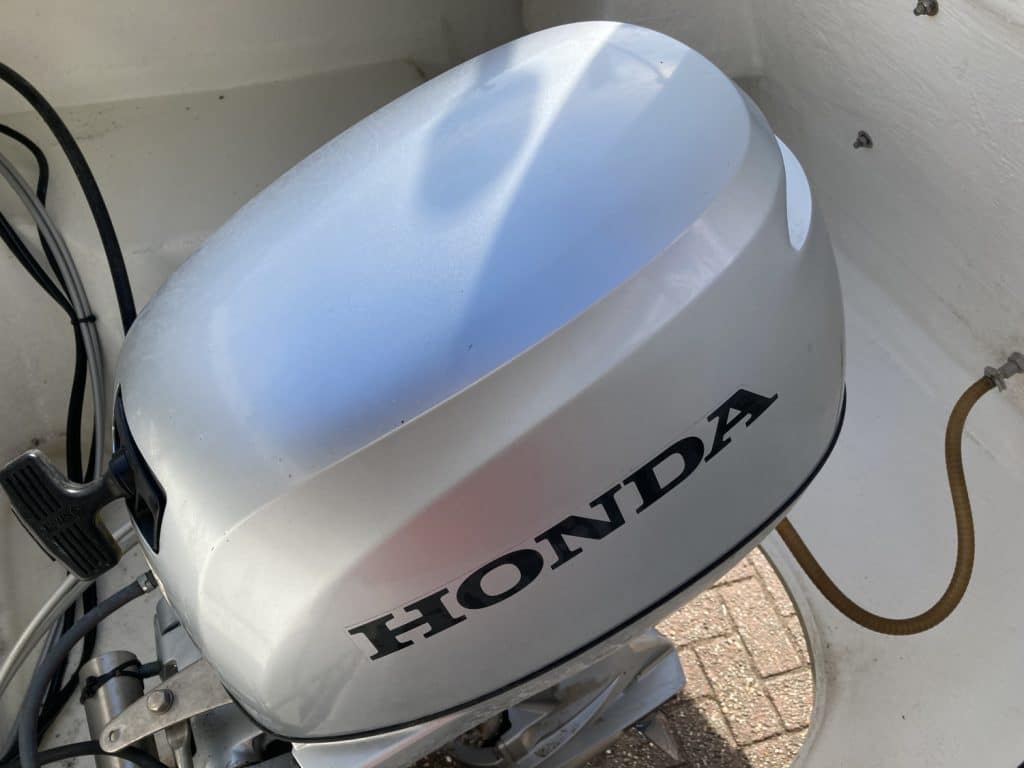 De Lago Maxima 600 is voorzien van een stille en zuinige Honda 20 pk buitenboordmotor in een geisoleerde bun ruimte.