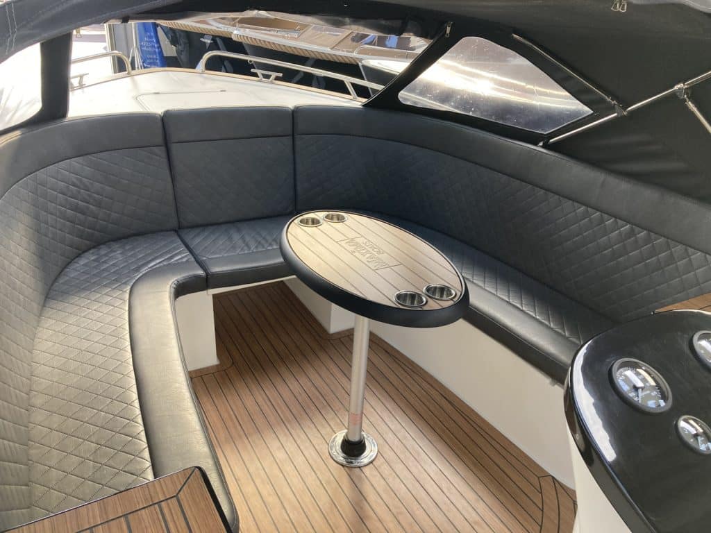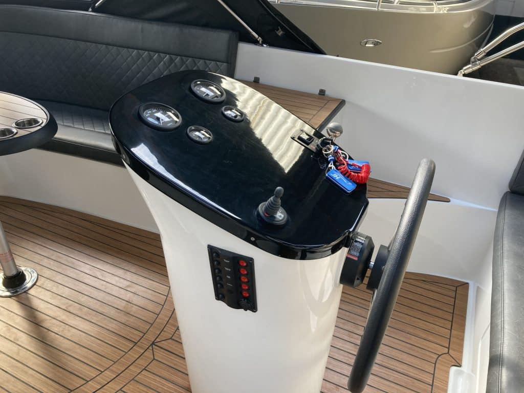 Deze sloep is mede dankzij de indeling en vaareigenschappen toch wel uniek te noemen! Deze boot kenmerkt zich door zijn gladde romp met geintegreerde kabelaring en geintegreerd zwemplateau, RVS railing, RVS beschermstrip rondom het zwemplateau en RVS beschermstrip rondom het traileroog. Een aantal praktische voordelen zijn de afgesloten toiletruimte, vele opbergvakken, hoge rugleuning, koersvaste vaareigenschappen en chique opstapjes aan de achterkant.