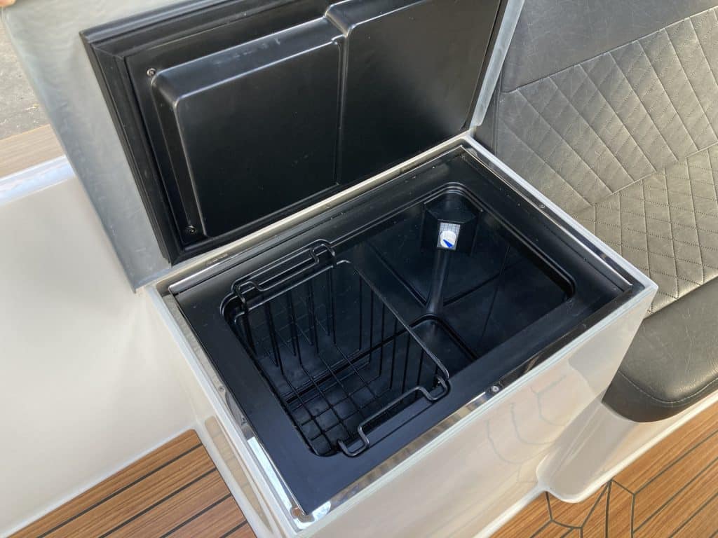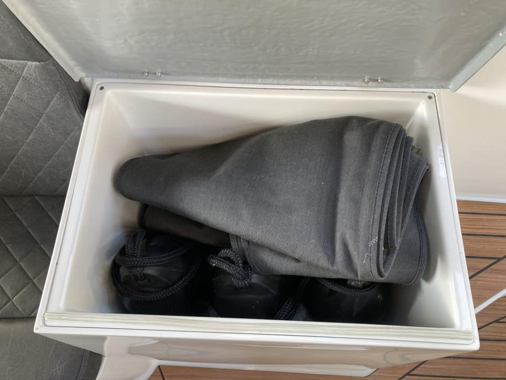 – Teakline/Finteak op opbergkist/koelbox stuurboord