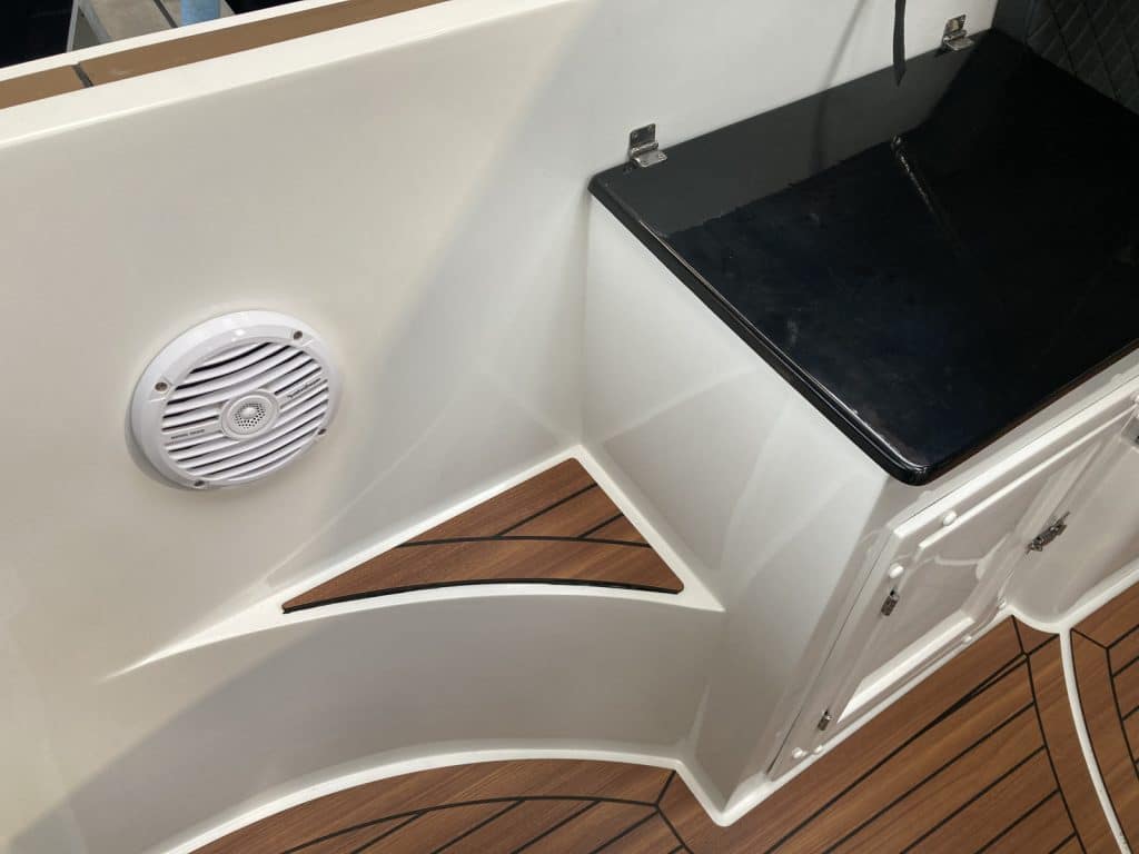 Uitgevoerd in de prachtige kleur Wit, in combinatie met de Carbon kussens maakt deze boot een Chique verschijning!