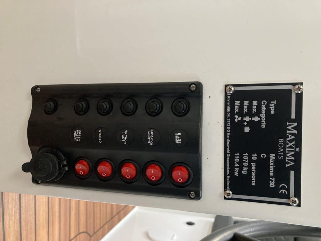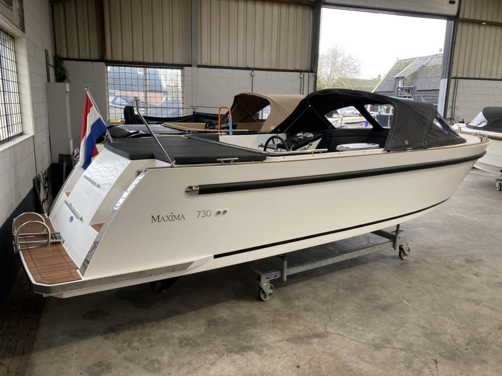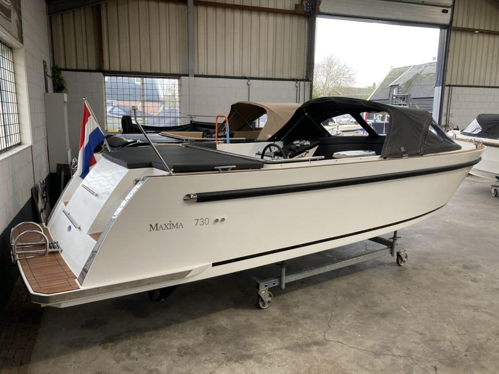 Deze nette Maxima 730 met Suzuki 140 pk ( bouwjaar 2019 ) verkeerd in nieuwstaat. De Maxima 730 met Suzuki 140 pk is een erg geliefde tender in dit formaat. De Maxima 730 met Suzuki 140 pk ziet er niet alleen prachtig uit, maar is ook heel comfortabel en ruim. Ze heeft voorin een uitzonderlijke hoge rugleuning. Dit zit heerlijk, maar is ook heel fijn wanneer je het zonnedek gebruikt. Zo lig je lekker uit de wind.