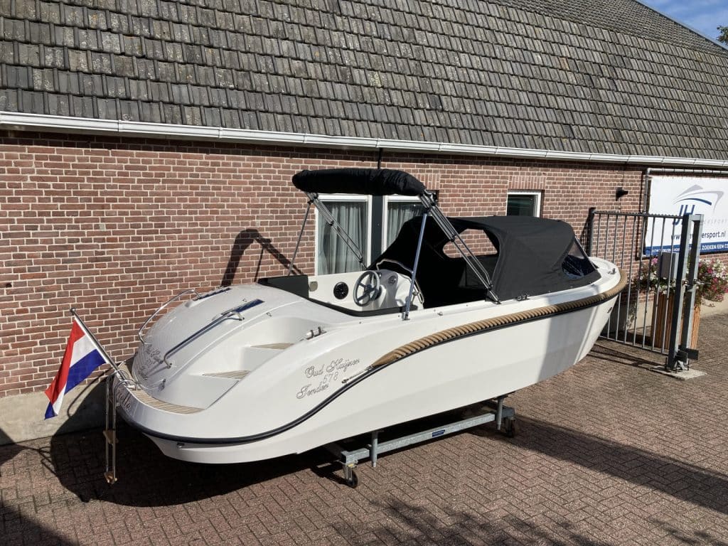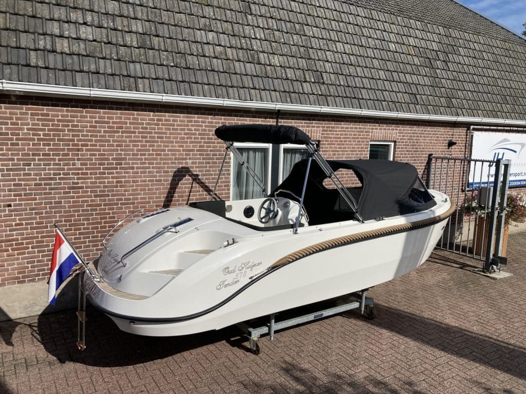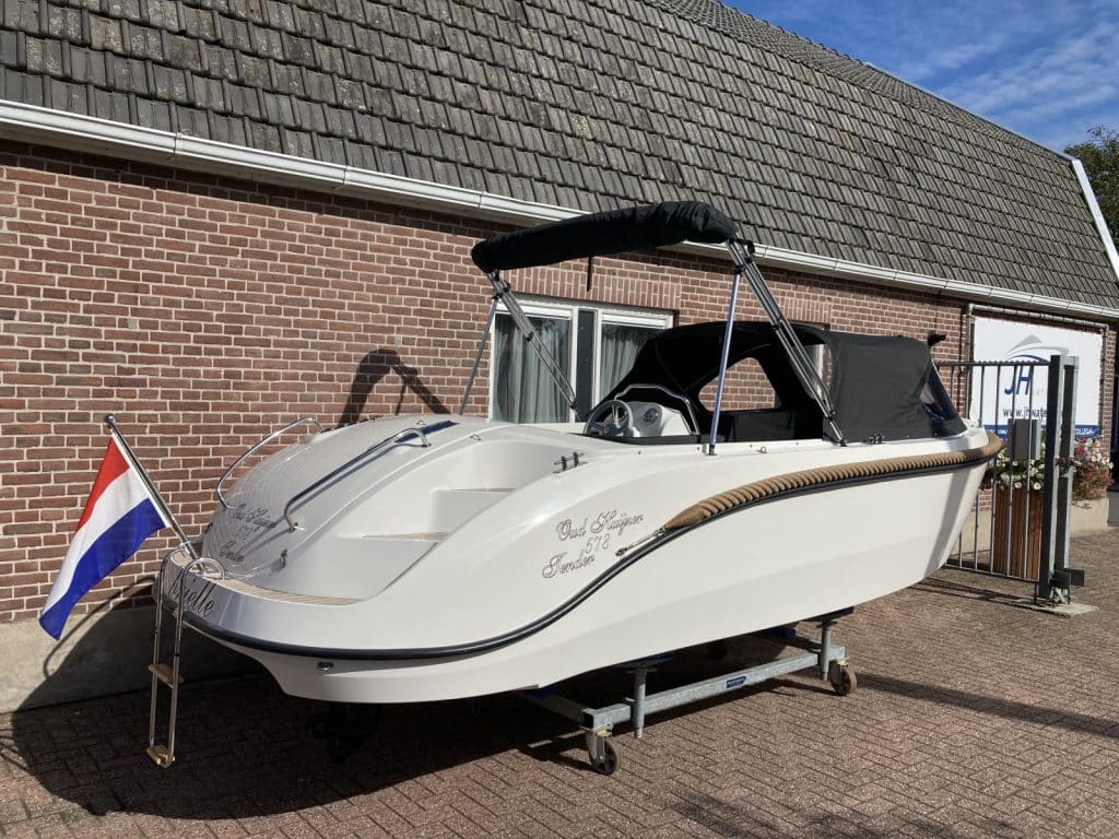 Deze zo goed als nieuwe Oudhuijzer 578 ( bouwjaar 2020, Suzuki motor 2022 ) verkeerd in Nieuwstaat !