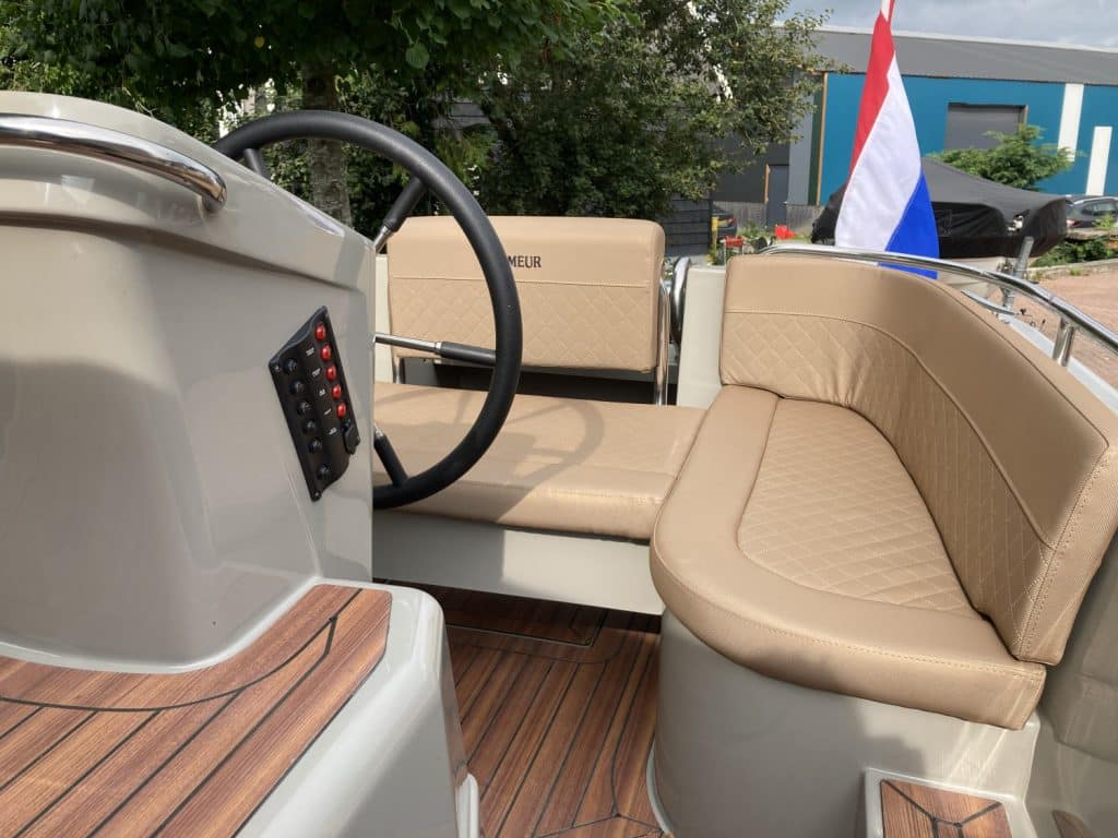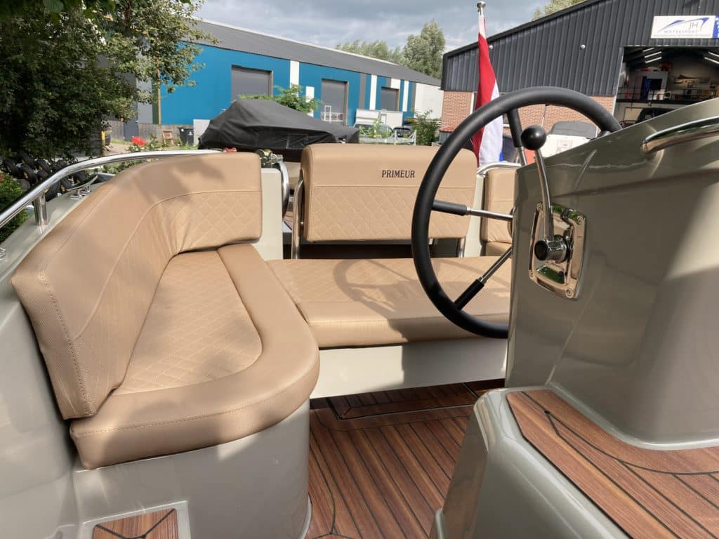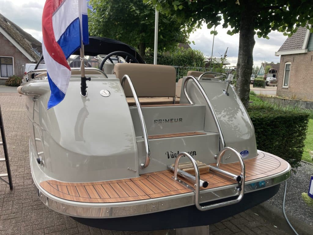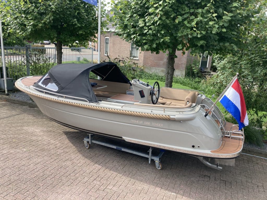 Deze zo goed als nieuwe Primeur 600 Tender( 11,5 vaaruren ) is het kleinere zusje van de Primeur 700 Tender. De Primeur 600 staat bekend om zijn goede vaareigenschappen en zijn goede lijnen, de Primeur 600 Tender heeft veel binnenruimte en een ruime zit. De achterzit bank is te verschuiven en makkelijk weg te halen zodat je een doorloop hebt naar je zwemplateau. De boot is compleet uitgerust met bijna alle denkbare accessoires.