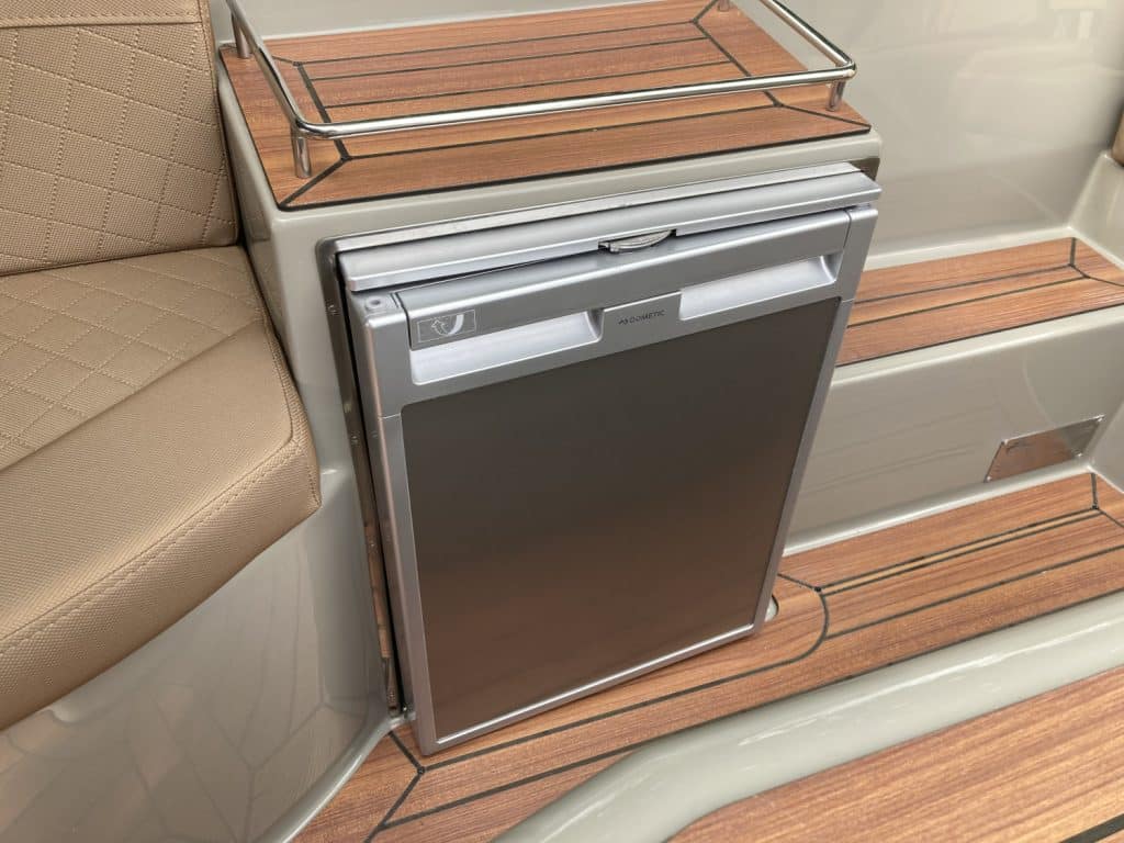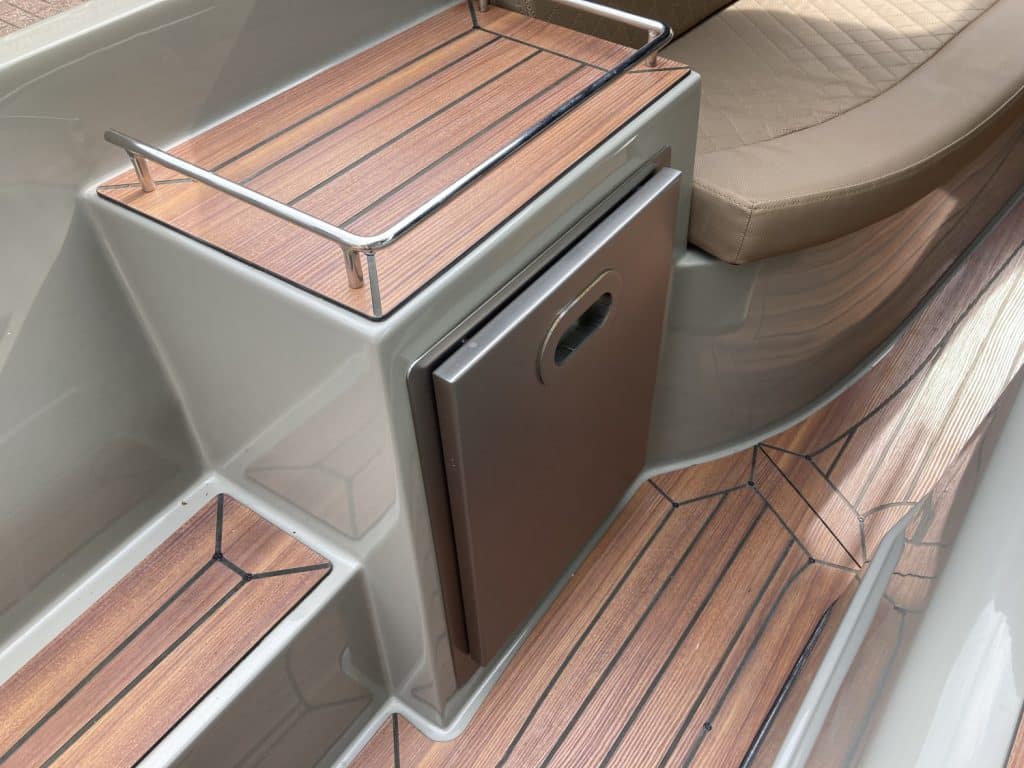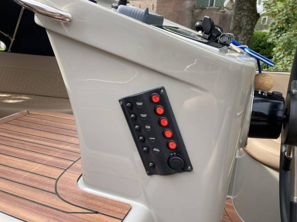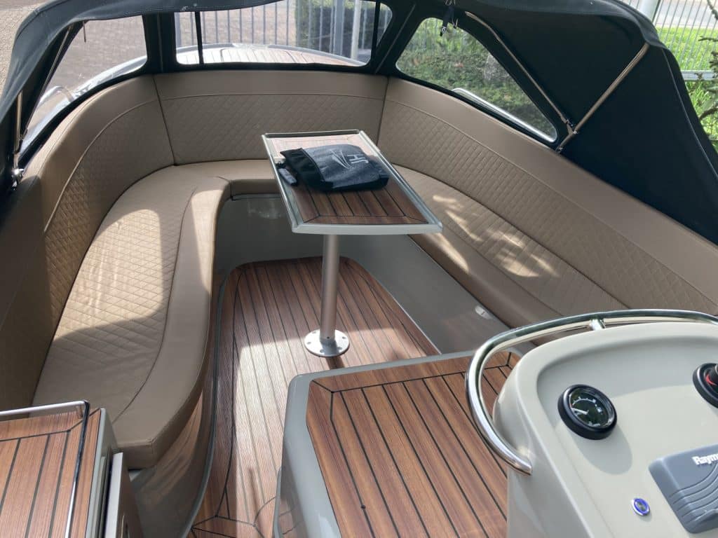 Deze zo goed als nieuwe Primeur 600 Tender( 11,5 vaaruren ) is het kleinere zusje van de Primeur 700 Tender. De Primeur 600 staat bekend om zijn goede vaareigenschappen en zijn goede lijnen, de Primeur 600 Tender heeft veel binnenruimte en een ruime zit. De achterzit bank is te verschuiven en makkelijk weg te halen zodat je een doorloop hebt naar je zwemplateau. De boot is compleet uitgerust met bijna alle denkbare accessoires.