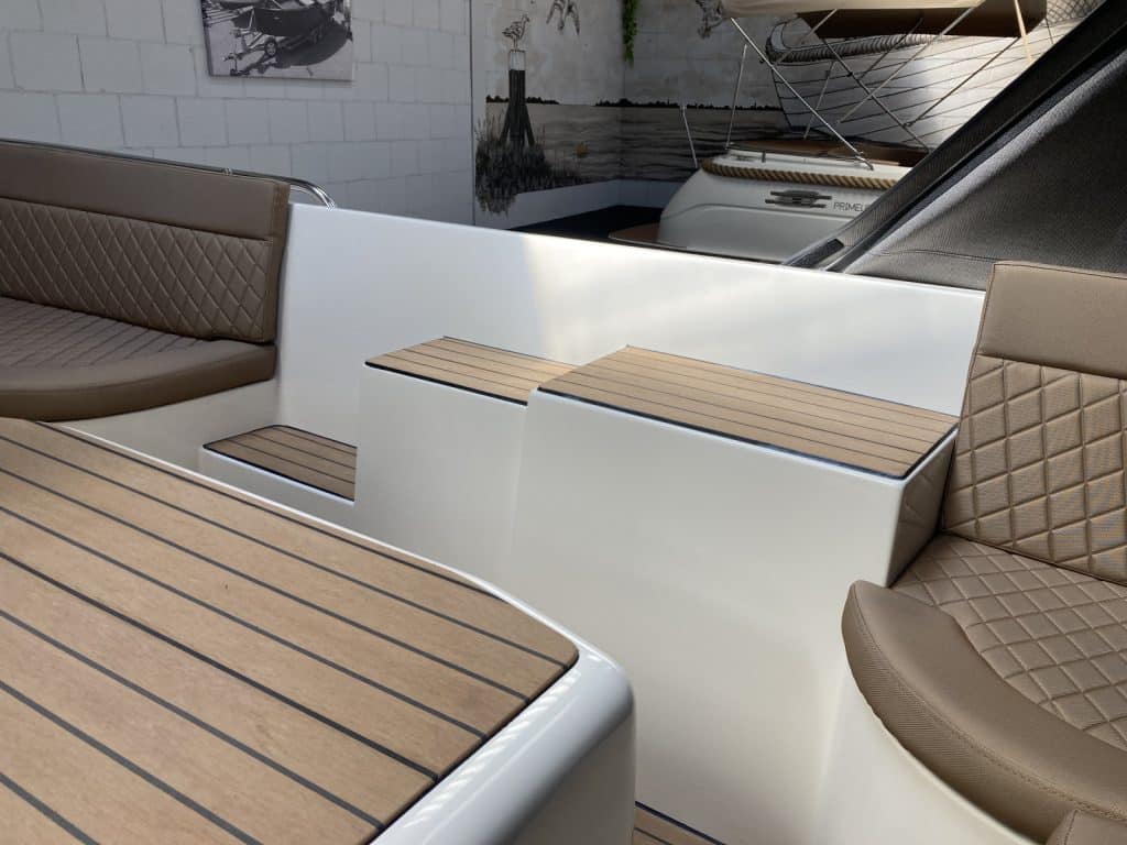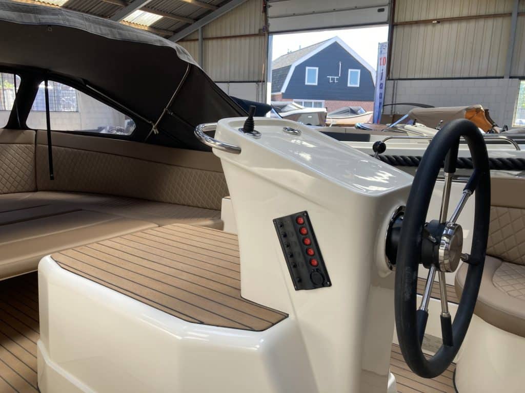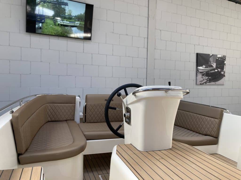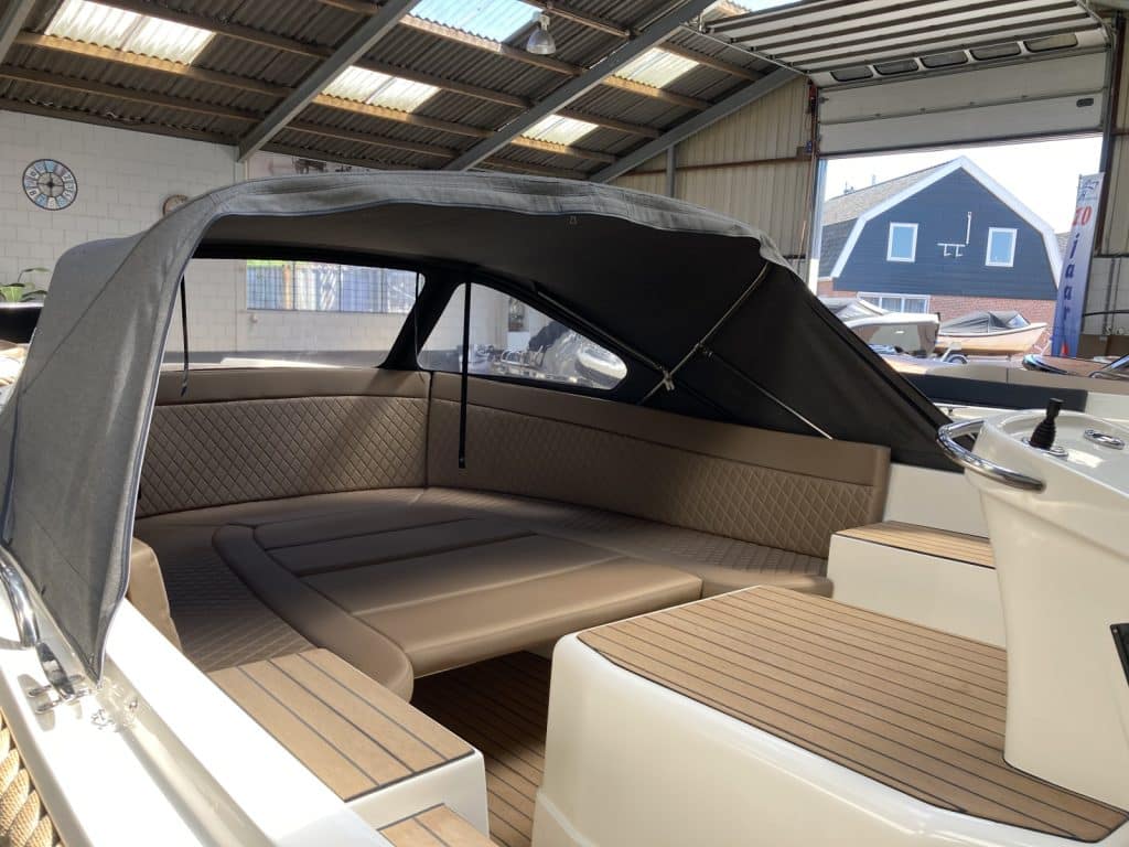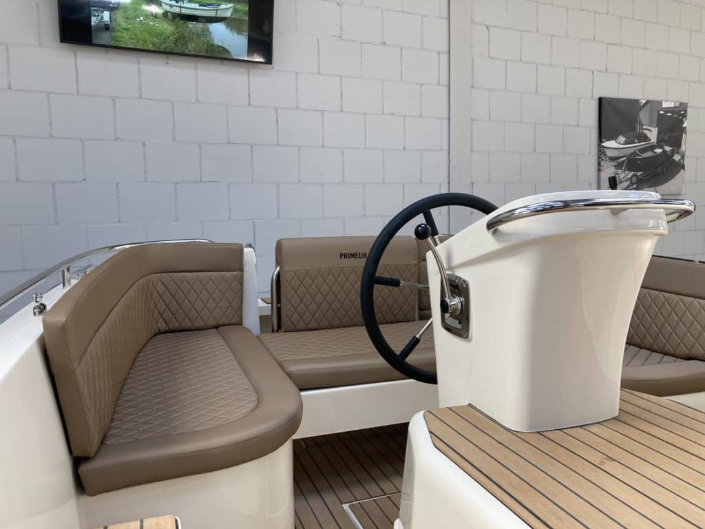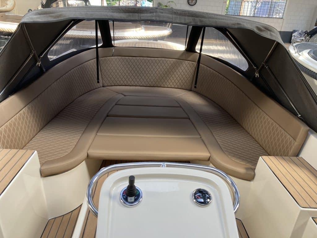 Deze tendersloep is voorzien van een ruime rondzit voorin met een fijne rugleuning. Onder de zitting is zijn verscheidene opbergruimtes te vinden. De bestuurder heeft een verstelbare zitbank om een ideale zitpositie achter het roer te vinden. Ook achterin zijn onder de zittingen opbergruimtes.