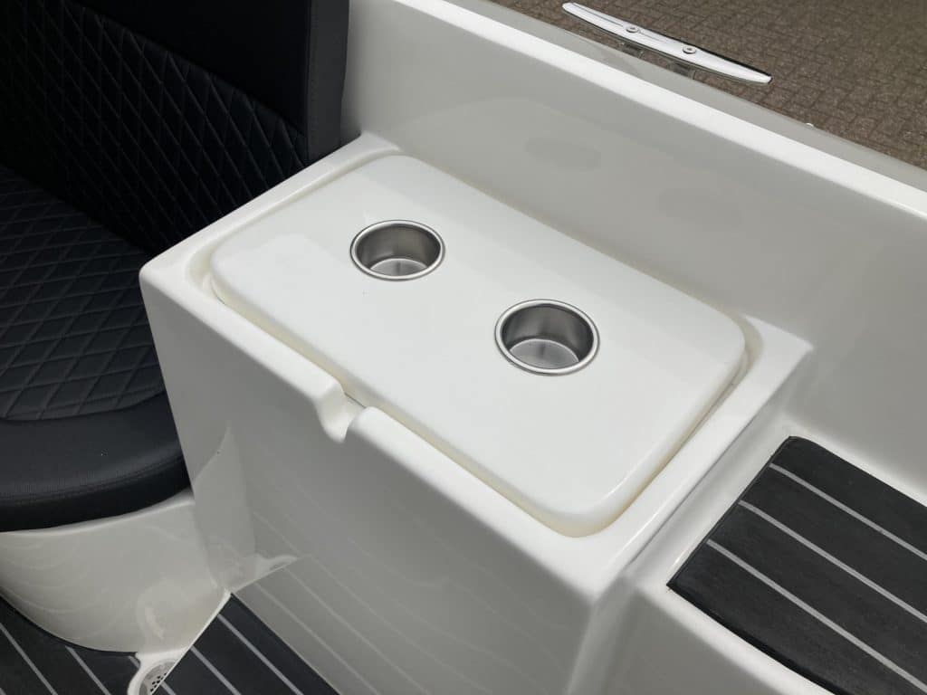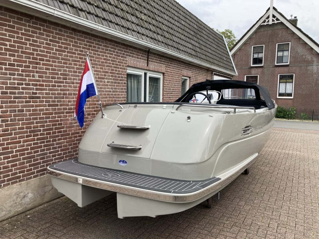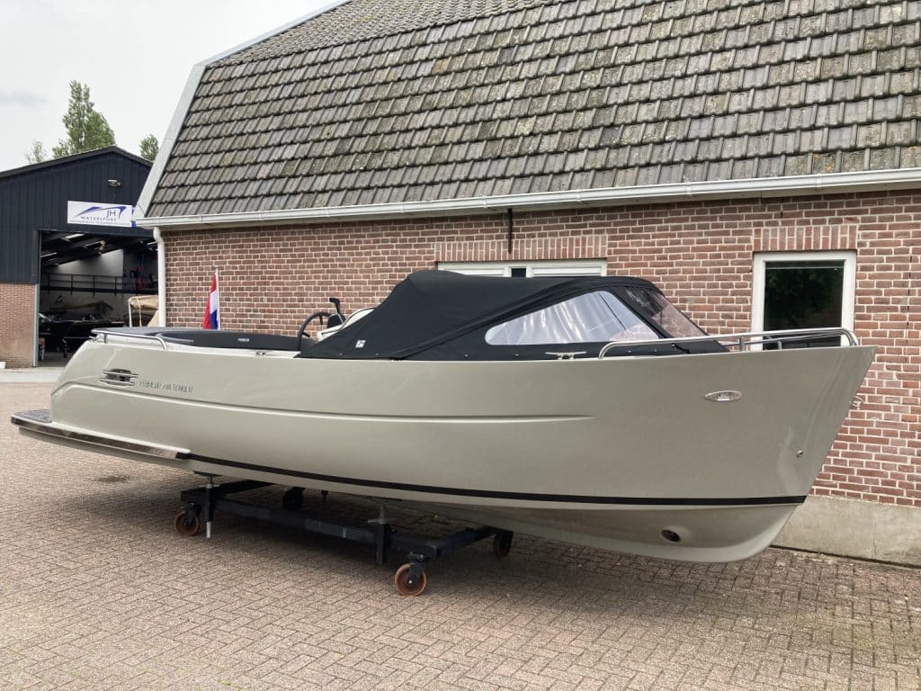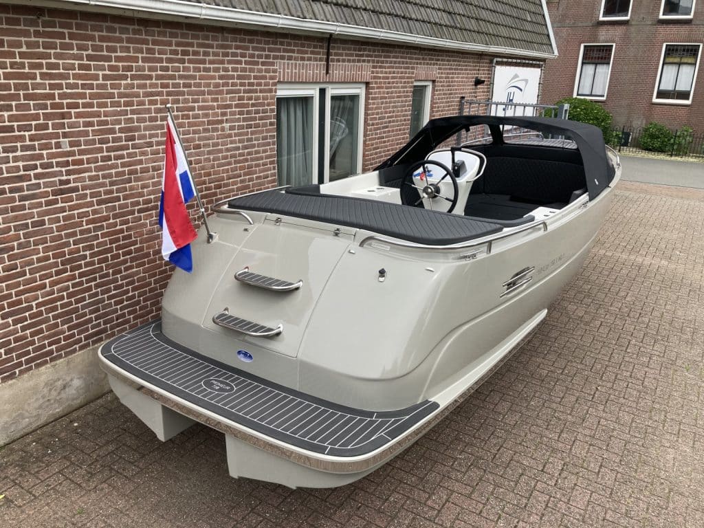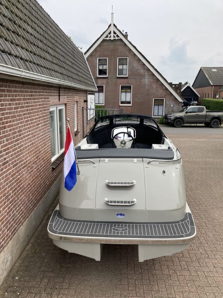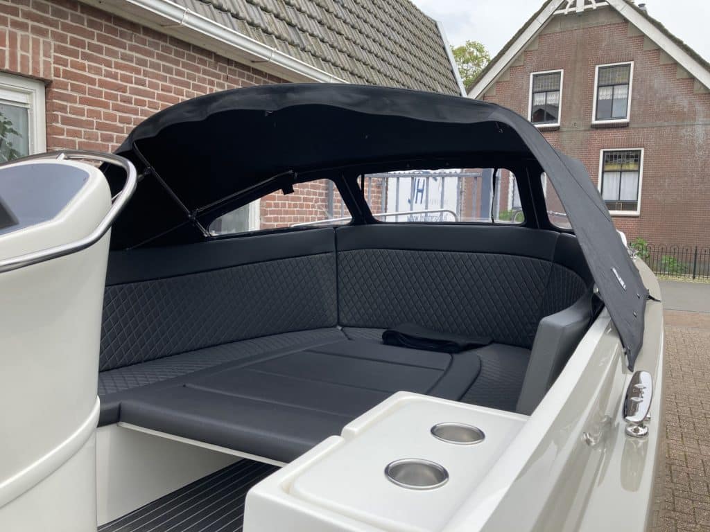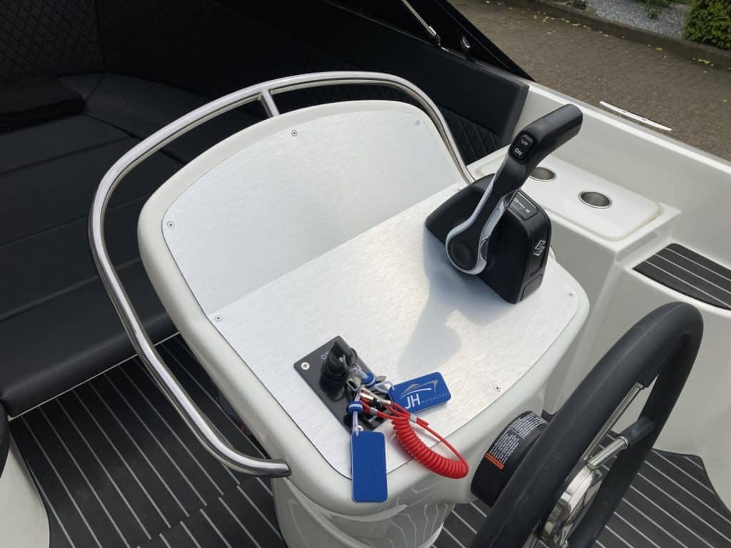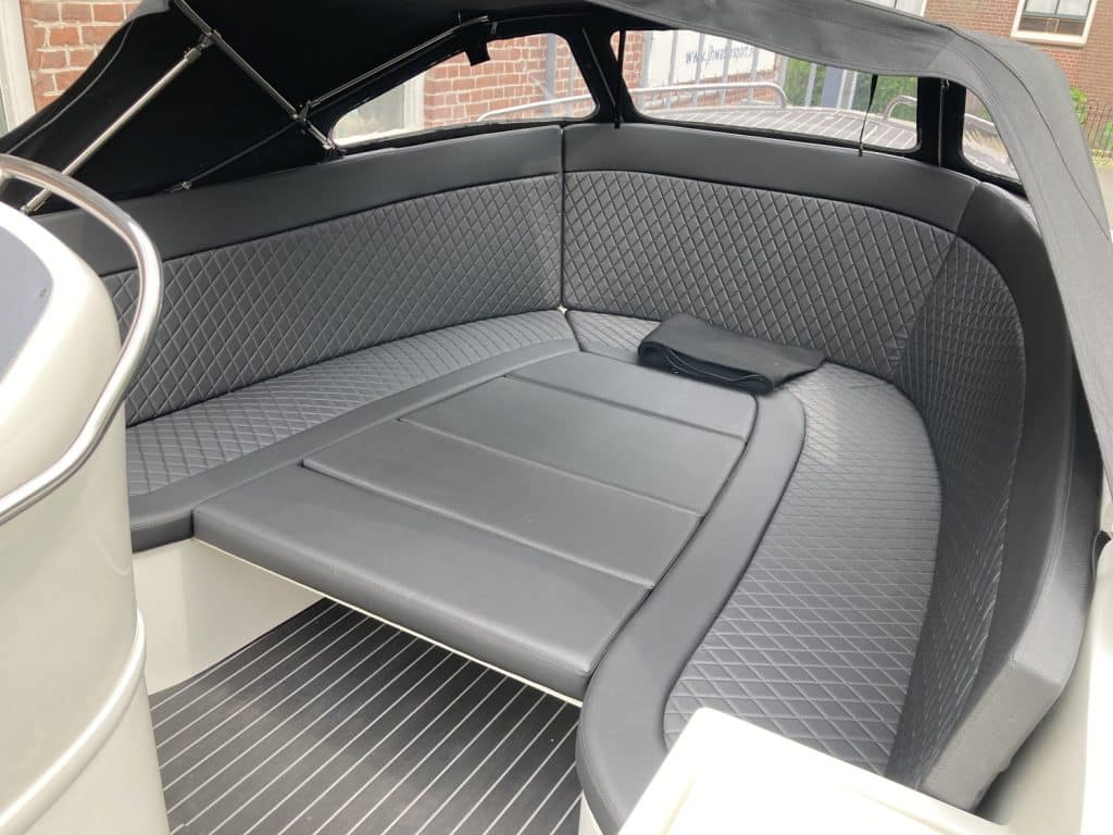 Het eerste wat opvalt aan deze fantastische 7 meter lange tender is het uiterlijk. Kenmerkend voor de Primeur 710 Tender is de gladde buitenzijde zonder kabelaring. Daardoor krijgt deze tender een sportief uiterlijk. Op de neus is een RVS-strip met trekoog bevestigd en ook om het zwemplateau vind je een RVS-stootlijst. Alles klopt aan deze tender. Het zwemplateau heeft een mooie maat en standaard is de boot afgewerkt met een teakline vloer en teakline op het zwemplateau. Optioneel is het mogelijk om het standaard teakline te vervangen voor Finland teakline of zelfs flexiteak. Wat onderhoudsvrij is en niet verkleurt.