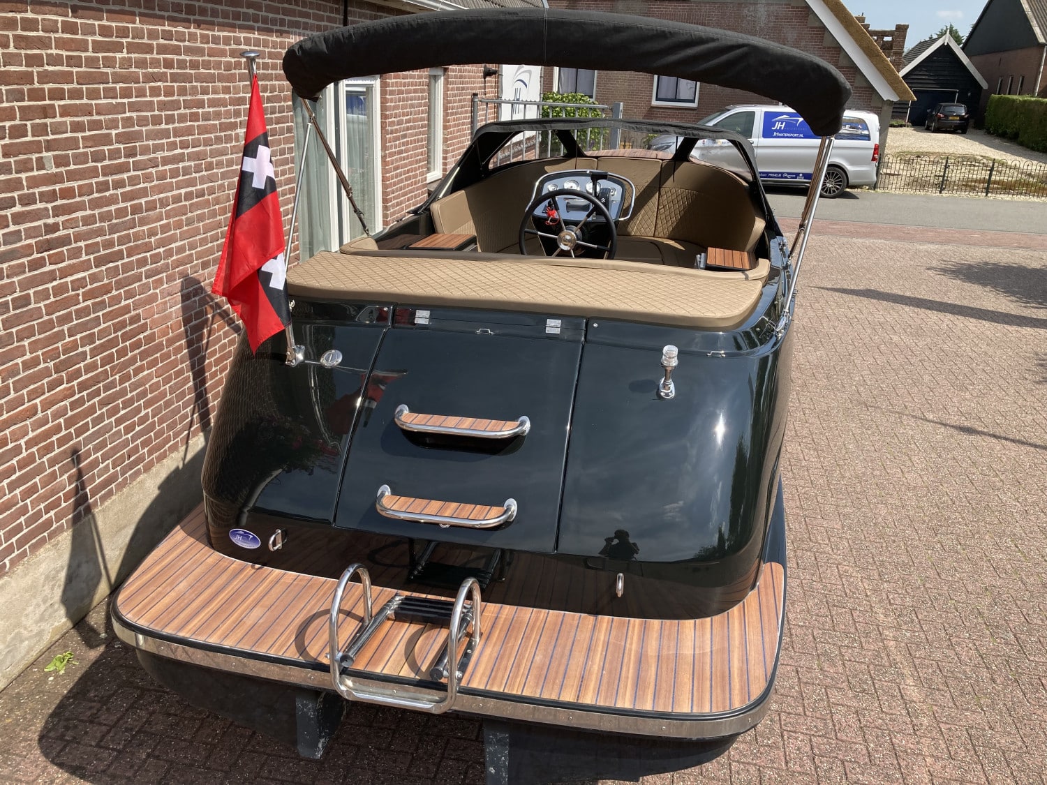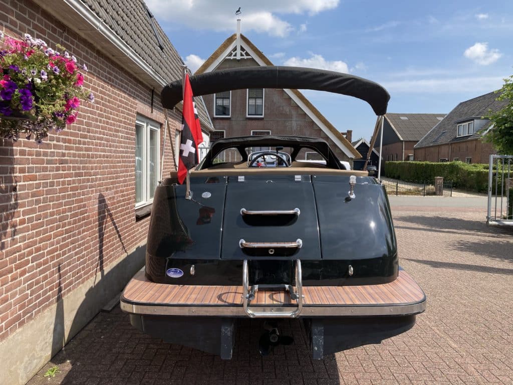 RVS biminitop, buiskap met achterkleed, zwemtrap, railingpakket en vlaggenstok