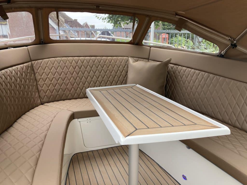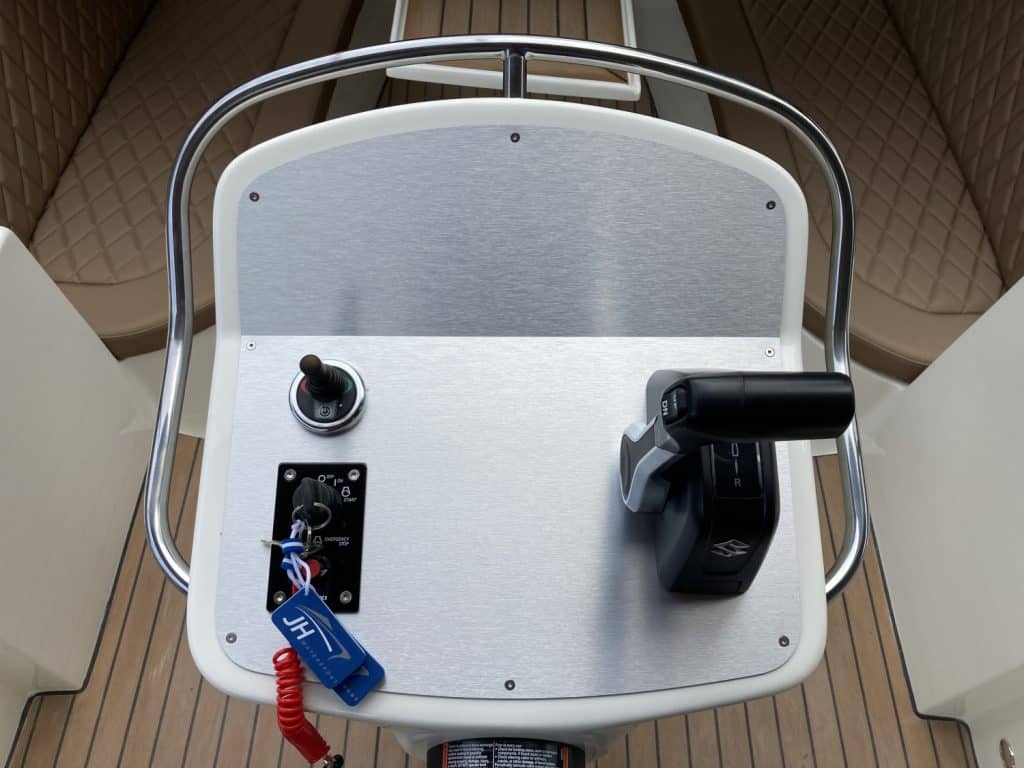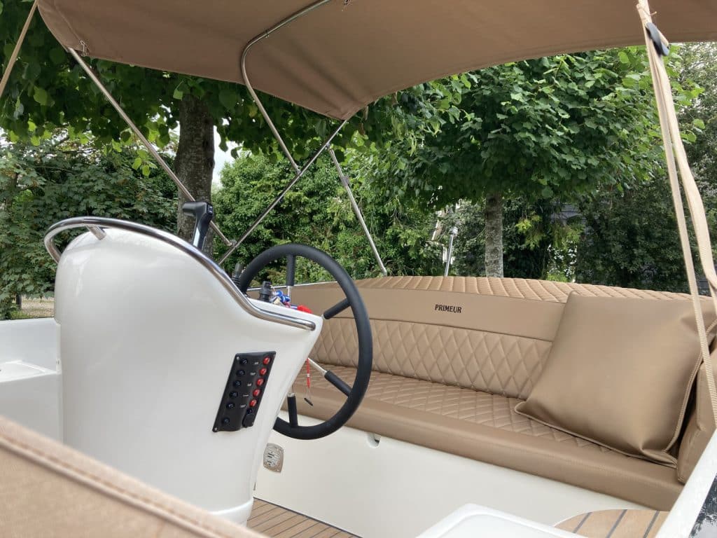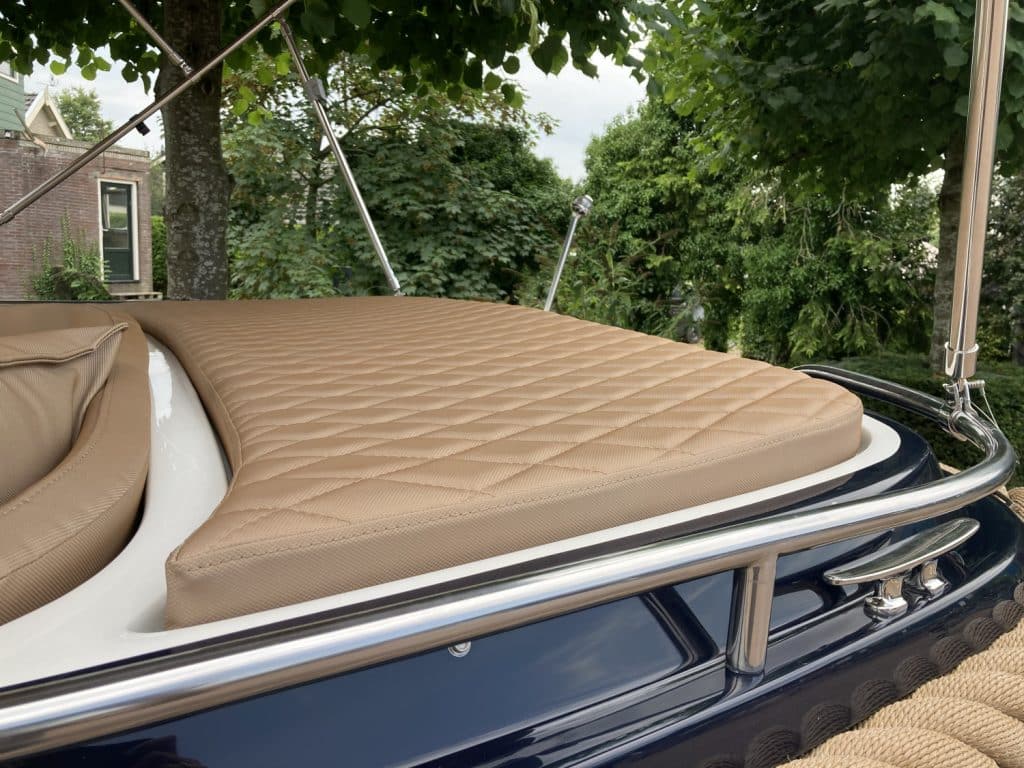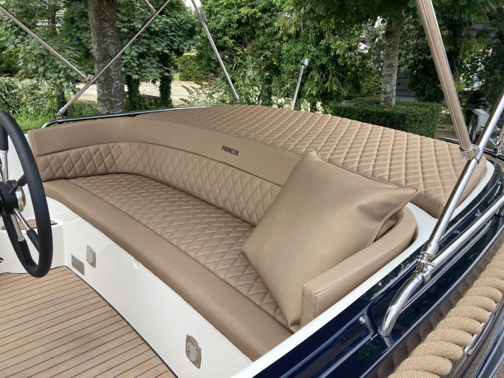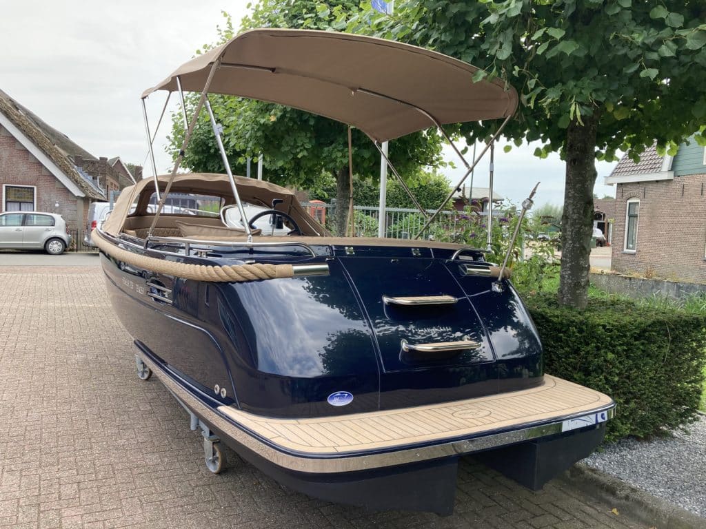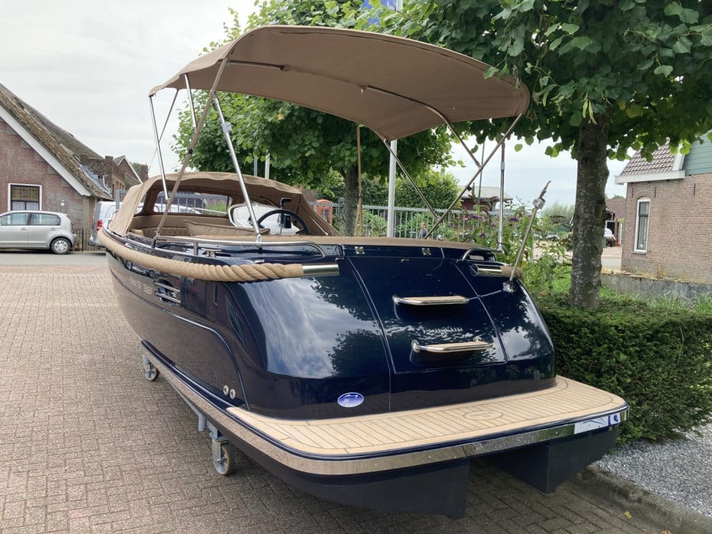 Deze mooie ruime Primeur 715 Tender heeft hetzelfde onderwaterschip als de Primeur 710 Tender, maar met andere optische kenmerken. Zo heeft de boot een kabelaring en andere bakken aan de zijkant. Deze bakken zijn te gebruiken als koelkast of prullenbak, maar fungeren ook als extra opbergruimte. Aan de achterkant is een zwemplateau bevestigd, handig om uit het water te komen. Om dit zwemplateau zit een RVS stootlijst. Standaard is de boot uitgevoerd met HPL teakline.