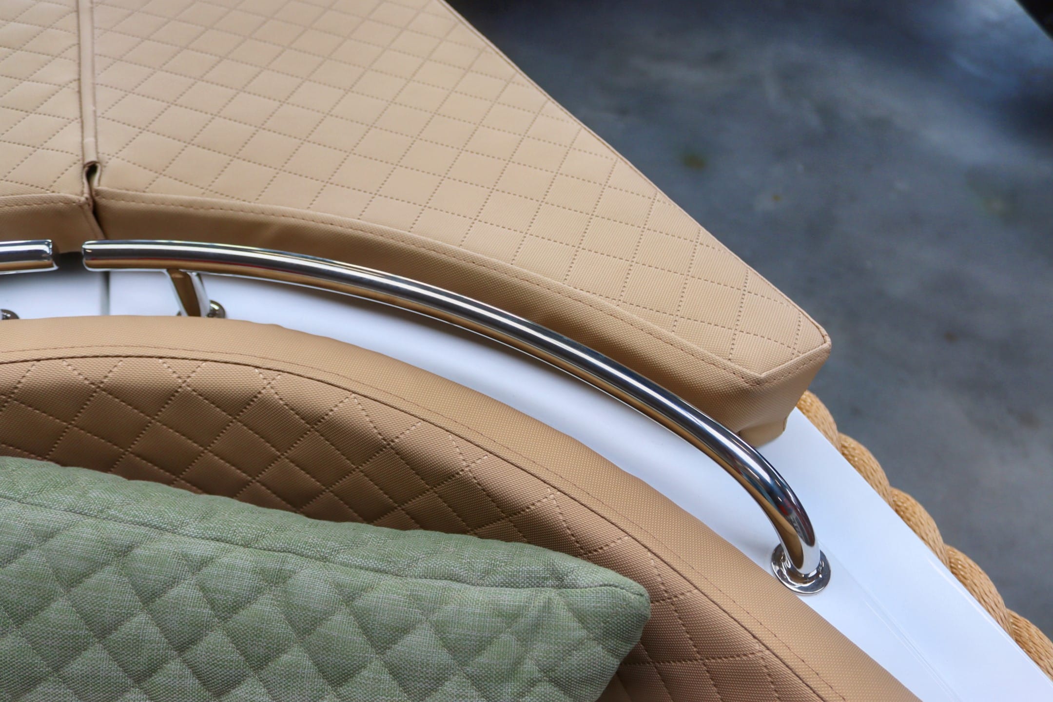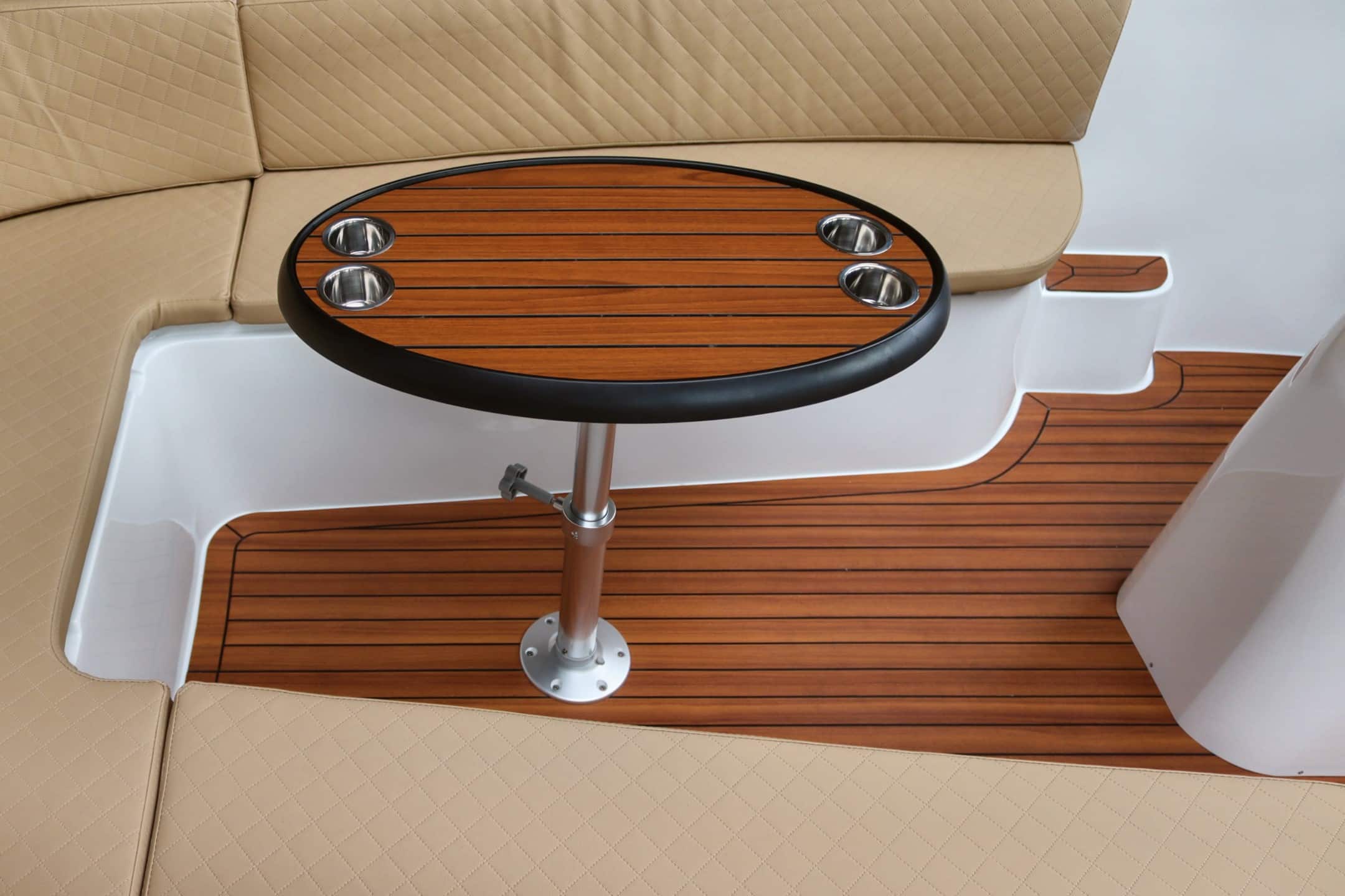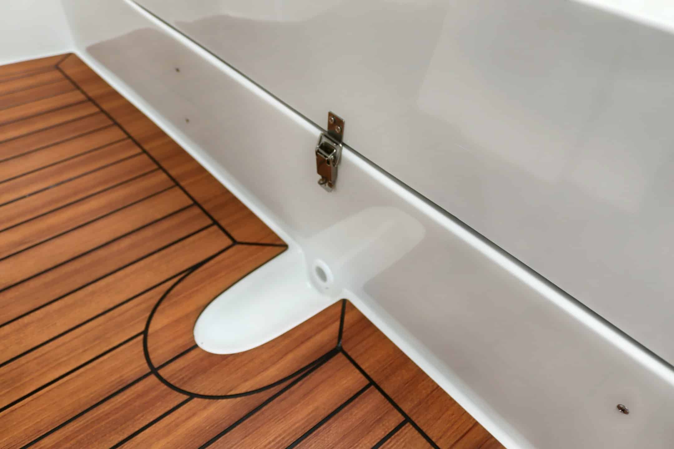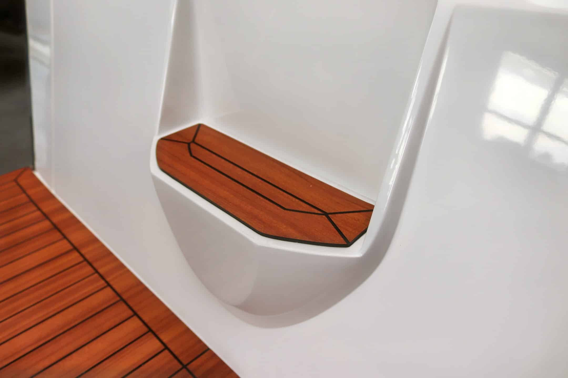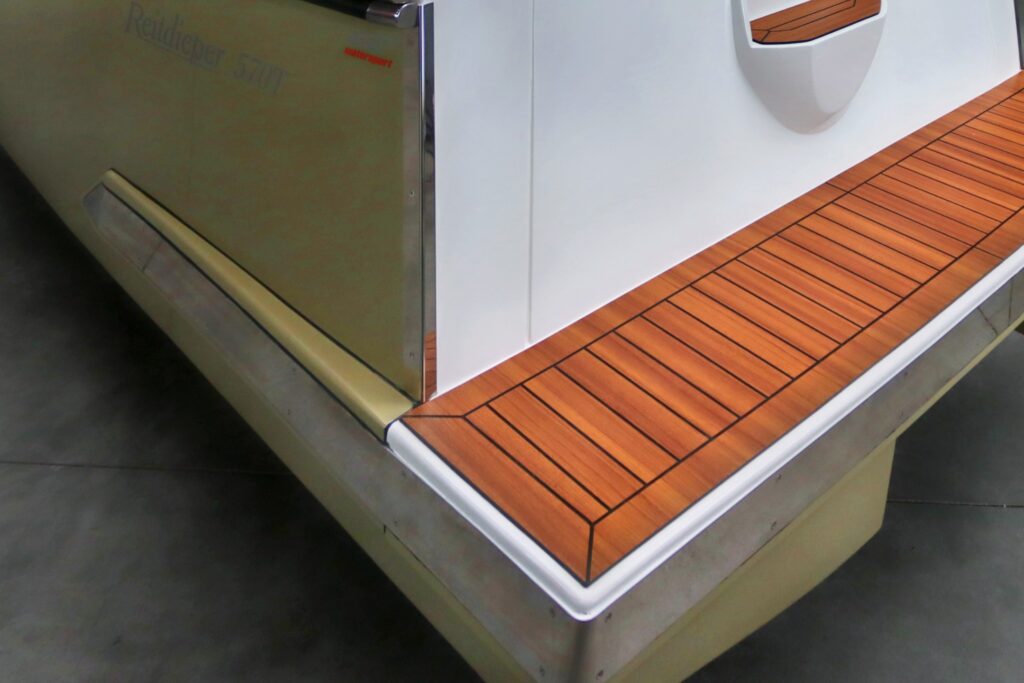 Finteak op de kuipvoer en op het zwemplateau.
