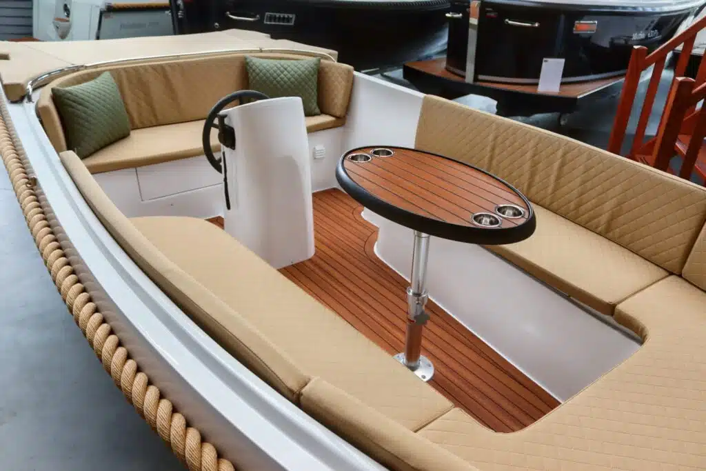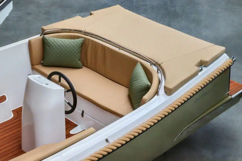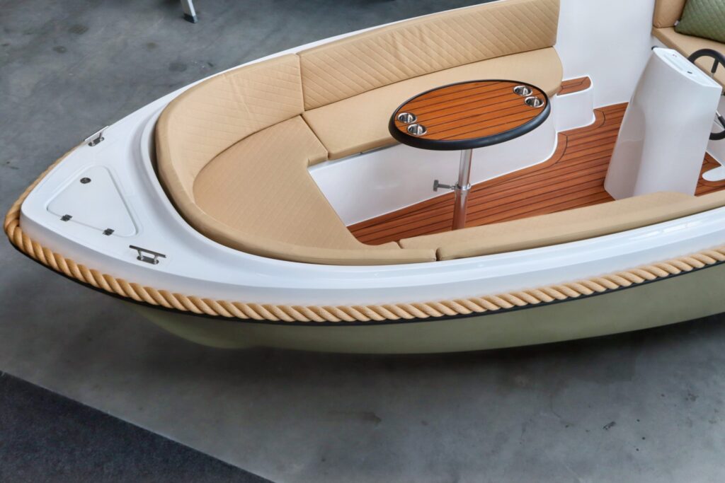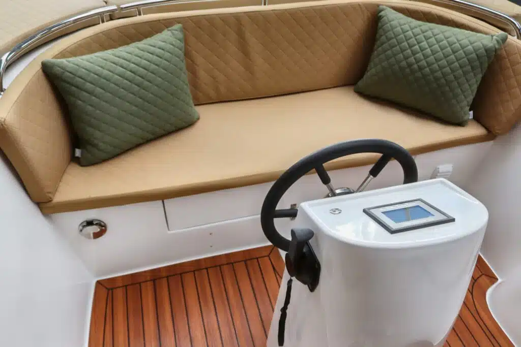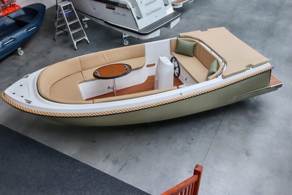 Deze prachtige nieuwe Reitdieper 5700 met de ePropulsion 3.0 Navy motor is uitgevoerd in een prachtige olijfgroene kleurstelling met camel Silvertex kussens. De Reitdieper 570 is een erg geliefde tender in dit formaat. De Reitdieper 570 ziet er niet alleen prachtig uit, maar is ook heel comfortabel en ruim. Ze heeft achterin en voorin een hoge rugleuning. Dit zit heerlijk, maar is ook heel fijn wanneer je het zonnedek gebruikt. Zo lig je lekker uit de wind.