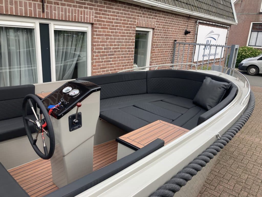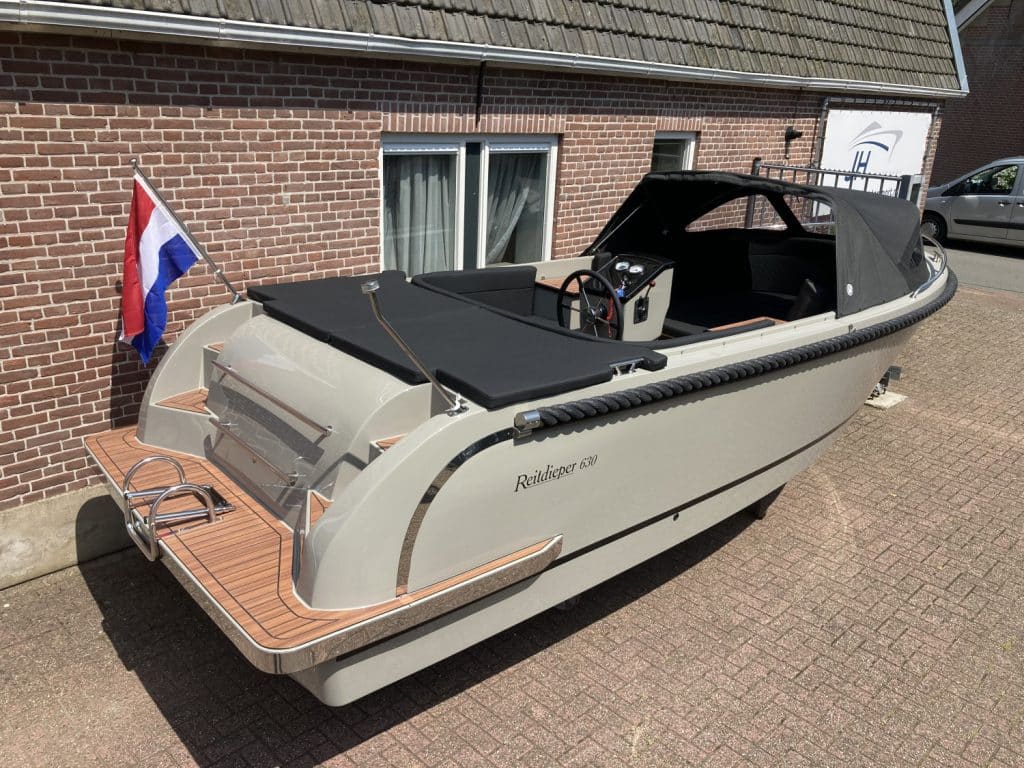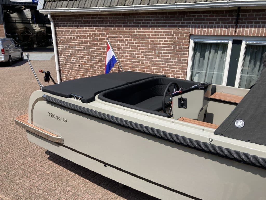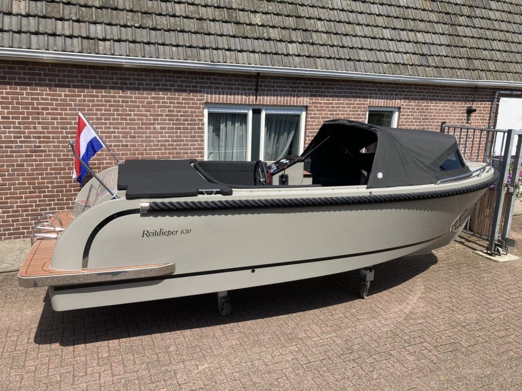 Deze prachtige nieuwe Reitdieper 630 ( bouwjaar 2024 ) is uitgevoerd in een prachtige steengrijze kleurstelling. De Reitdieper 630 is een erg geliefde tender in dit formaat. De Reitdieper 630 ziet er niet alleen prachtig uit, maar is ook heel comfortabel en ruim. Ze heeft voorin een uitzonderlijke hoge rugleuning. Dit zit heerlijk, maar is ook heel fijn wanneer je het zonnedek gebruikt. Zo lig je lekker uit de wind.
