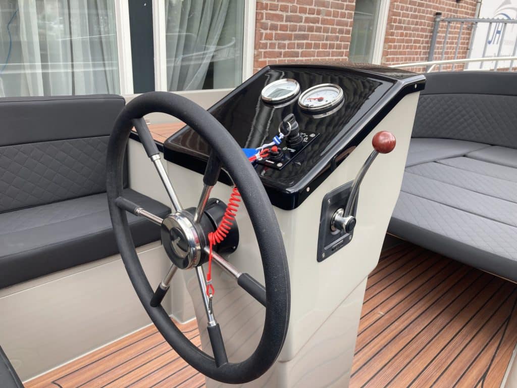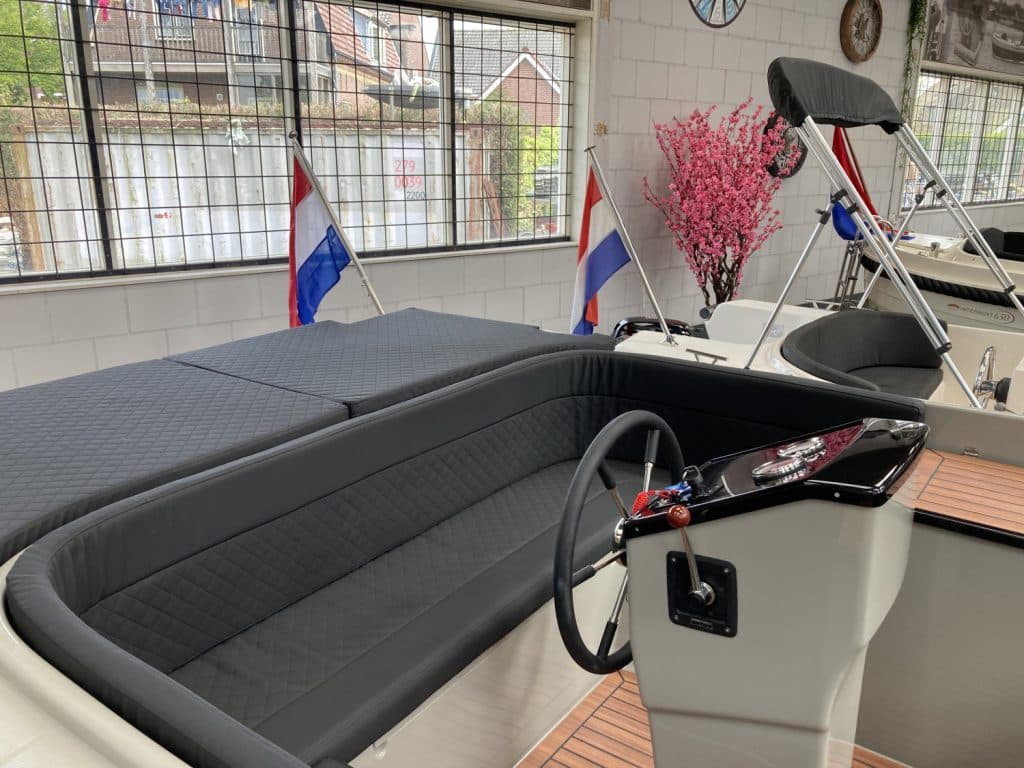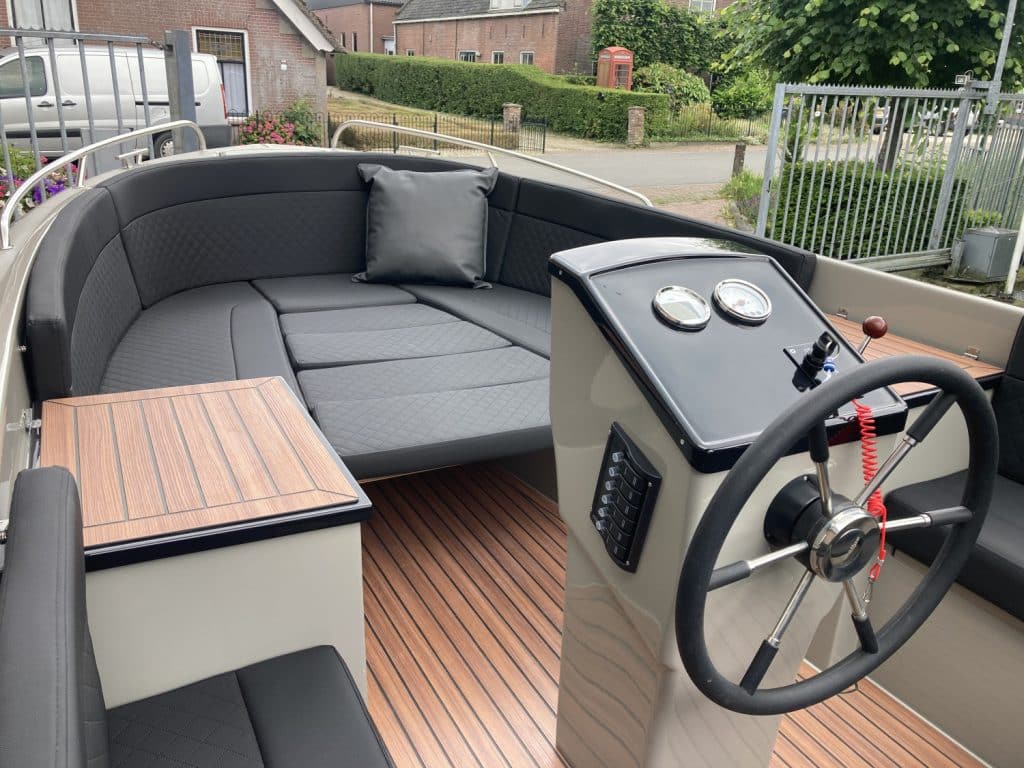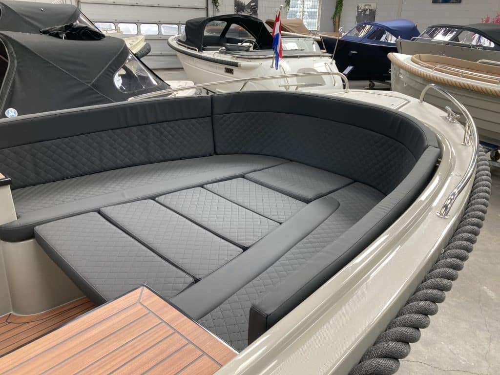 Deze prachtige nieuwe Reitdieper 630 ( bouwjaar 2024 ) is uitgevoerd in een prachtige steengrijze kleurstelling. De Reitdieper 630 is een erg geliefde tender in dit formaat. De Reitdieper 630 ziet er niet alleen prachtig uit, maar is ook heel comfortabel en ruim. Ze heeft voorin een uitzonderlijke hoge rugleuning. Dit zit heerlijk, maar is ook heel fijn wanneer je het zonnedek gebruikt. Zo lig je lekker uit de wind.