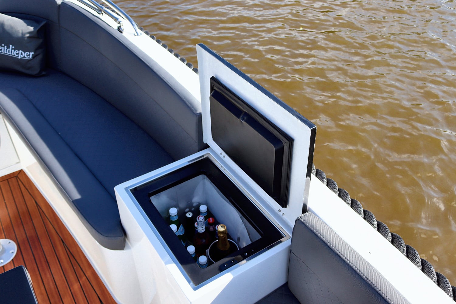 Deze prachtige nieuwe Reitdieper 630 met de ePropulsion 6.0 Navy motor is uitgevoerd in een prachtige Grafietzwarte kleurstelling met Antraciet Silvertex kussens. De Reitdieper 630 is een erg geliefde tender in dit formaat. De Reitdieper 630 ziet er niet alleen prachtig uit, maar is ook heel comfortabel en ruim. Ze heeft voorin een uitzonderlijke hoge rugleuning. Dit zit heerlijk, maar is ook heel fijn wanneer je het zonnedek gebruikt. Zo lig je lekker uit de wind.