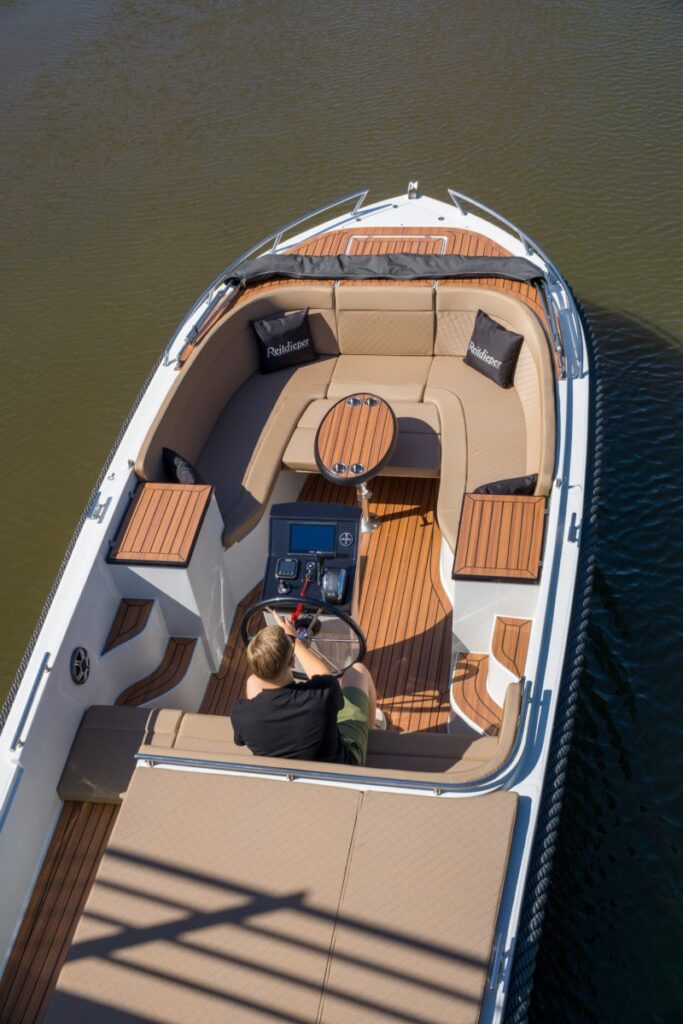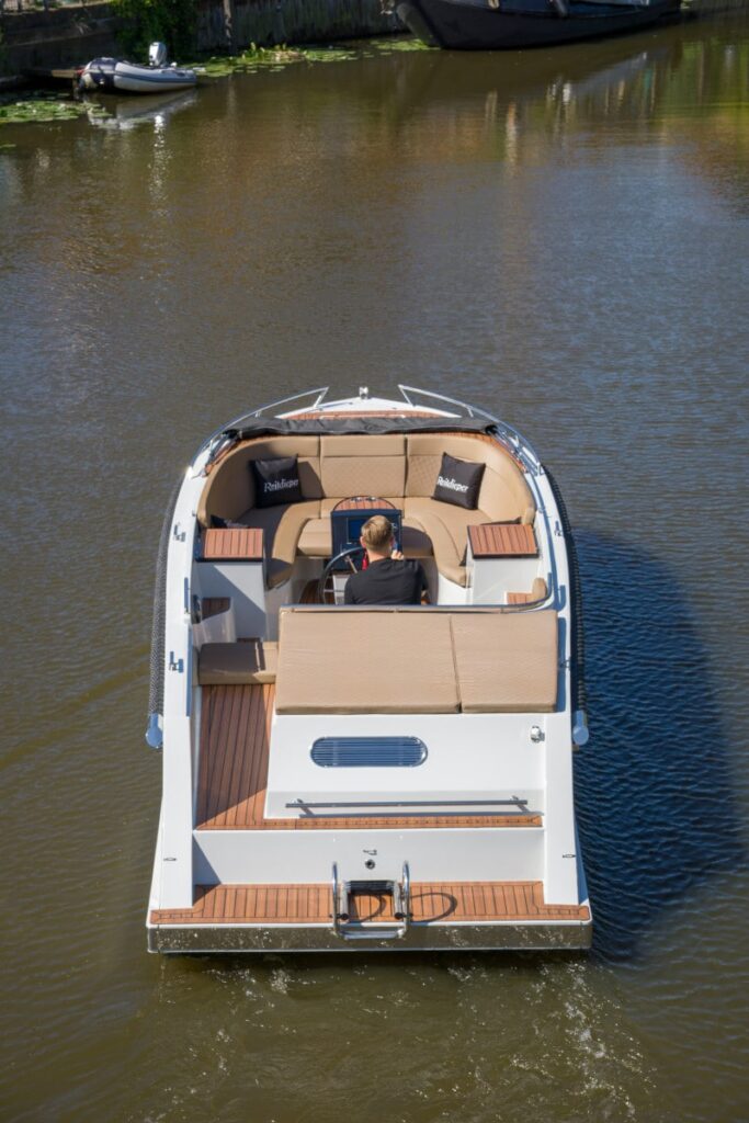 Deze prachtige nieuwe Reitdieper 735 met Suzuki 60 pk is uitgevoerd met een open doorloop naar het zwemplateau. Zo hoef je niet meer over het bunkussen heen te klimmen. Deze Reitdieper 735 is uitgevoerd in een prachtige lichtgrijze kleurstelling met antraciete Silvertex kussens. De Reitdieper 735 is een erg geliefde tender in dit formaat. De Reitdieper 735 ziet er niet alleen prachtig uit, maar is ook heel comfortabel en ruim. Ze heeft voorin een uitzonderlijke hoge rugleuning. Dit zit heerlijk, maar is ook heel fijn wanneer je het zonnedek gebruikt. Zo lig je lekker uit de wind.