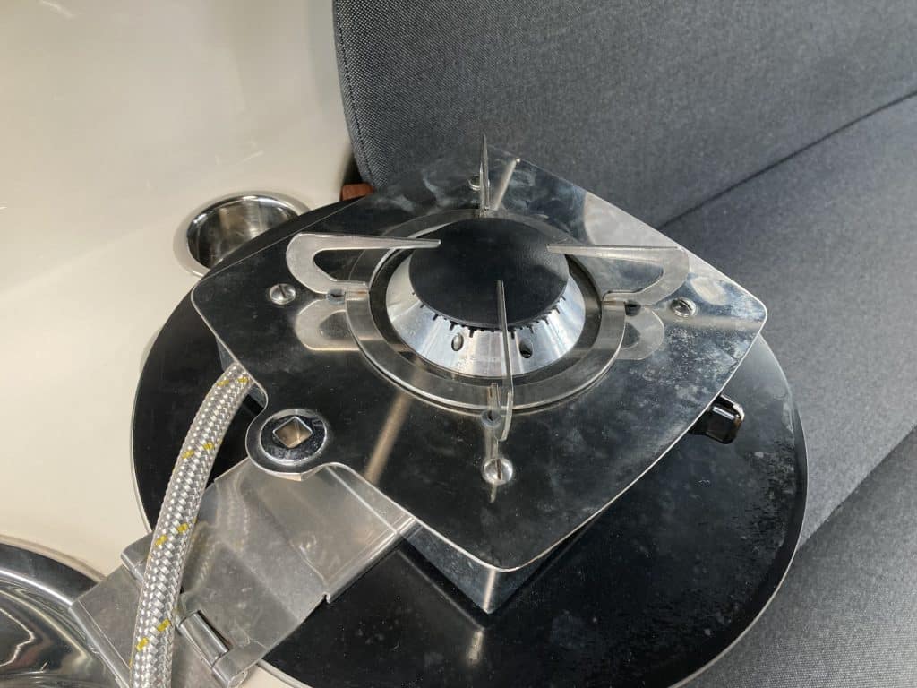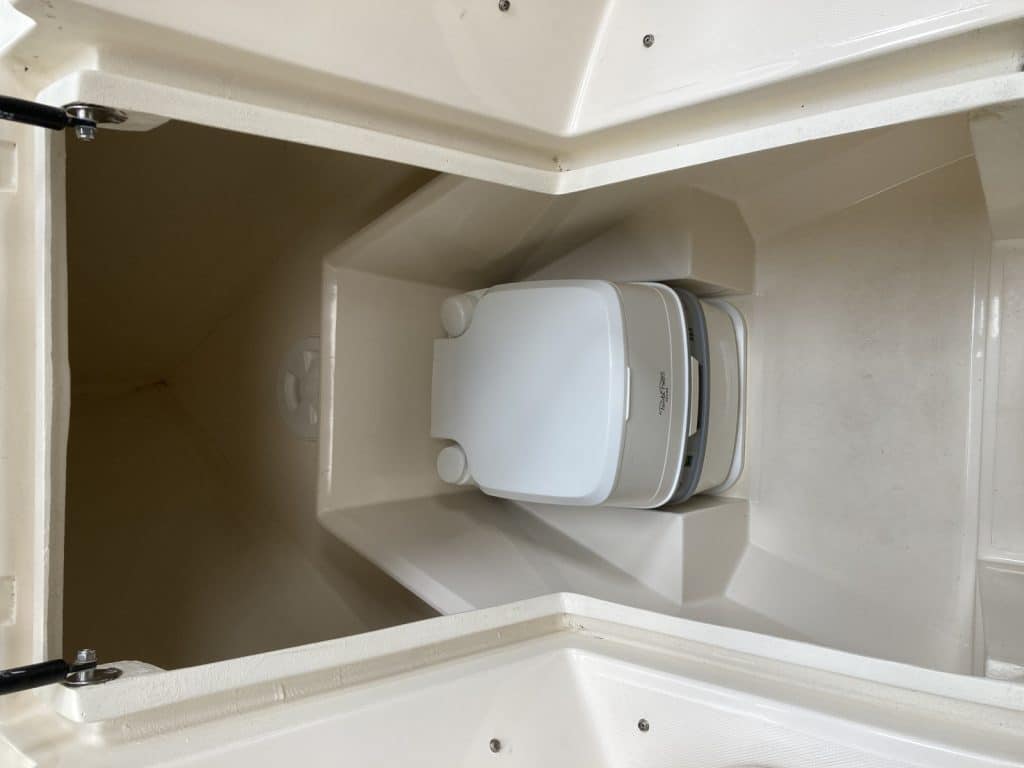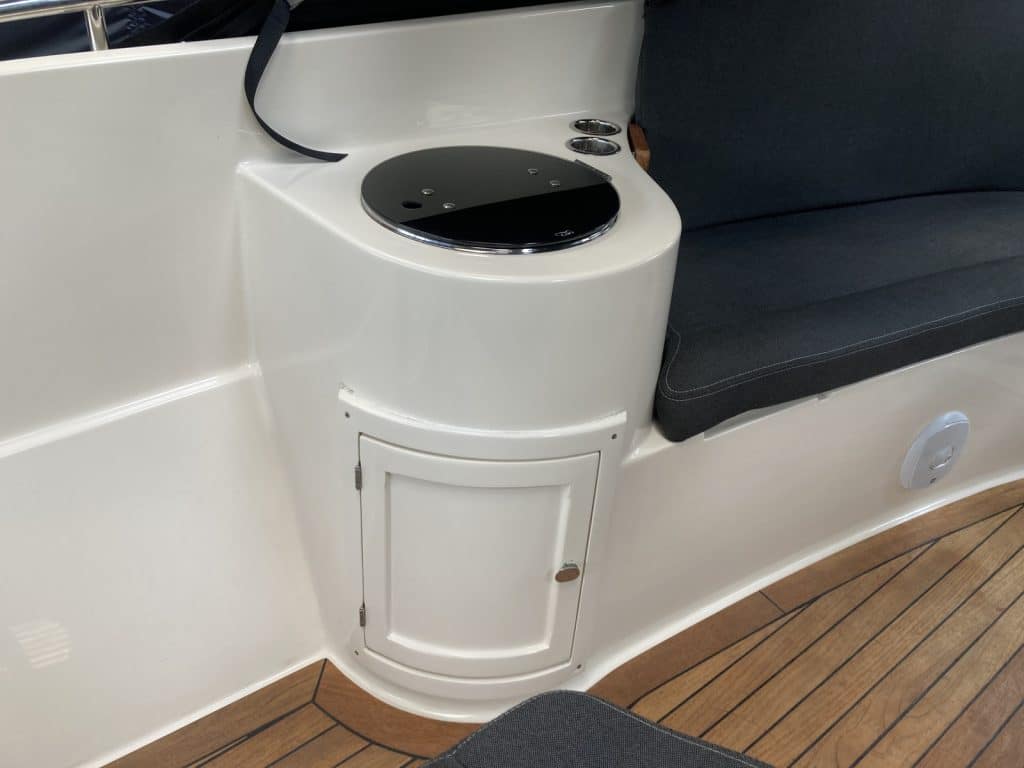 Een comfortabele sloep met veel bergruimte. De rondzit voorin het schip is uitgevoerd met een weg neembaar zonnebed.
