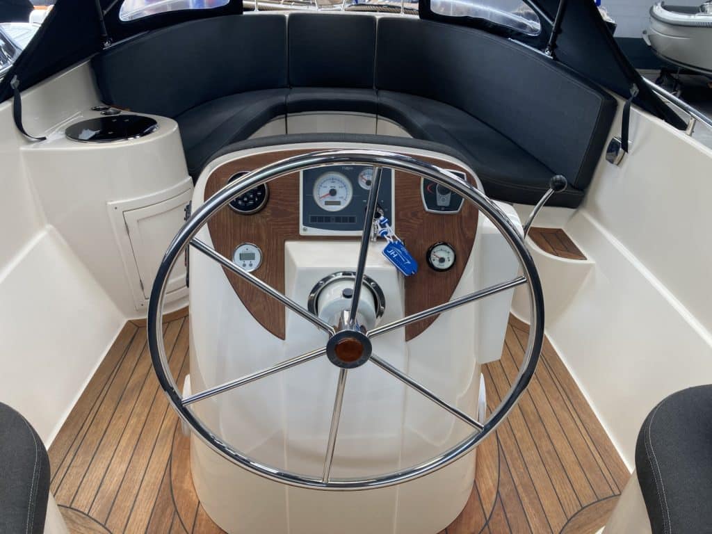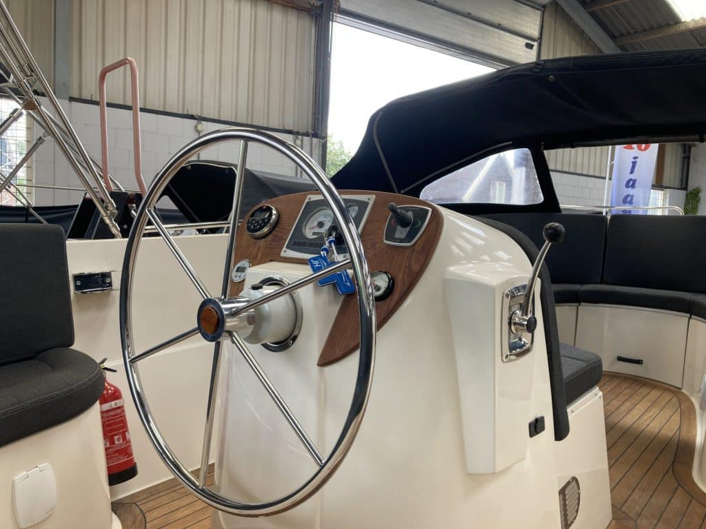Nette Riviera 24 uit 2014 Compleet, goed onderhouden en volledig vaarklaar. Deze Riviera 24 is compleet o.a. met een 27 pk sterke 3-cylinder craftsman diesel, zonnebed,koelkast, toilet, wasbakje,teakvloer, radio en ga zo nog maar even door.