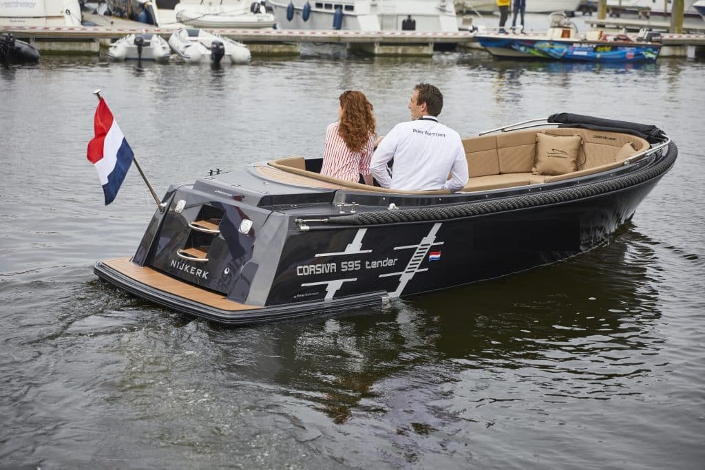 De Corsiva 595 Tender is de vernieuwde en verbeterde opvolger van de populaire Corsiva 590. Met een verfijnd ontwerp, hoogwaardige afwerking en slimme innovaties tilt deze tender het vaarcomfort en de uitstraling naar een hoger niveau. Of je nu ontspannen wilt toeren door de grachten of sportief wilt genieten op open water – de 595 combineert elegantie met prestaties.
