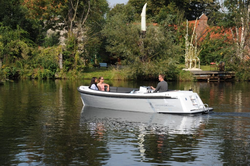 Ondanks zijn elegante uitstraling is de Corsiva 595 Tender allesbehalve een langzame cruiser. Dankzij de uitgebalanceerde romp en het slimme onderwaterschip levert de boot uitstekende prestaties. Zelfs met een 50 pk buitenboordmotor is het al mogelijk om te wakeboarden of waterskiën, terwijl de boot stabiel en koersvast blijft. Wie liever rustig vaart, profiteert van de stille, soepele vaareigenschappen die typerend zijn voor Corsiva.