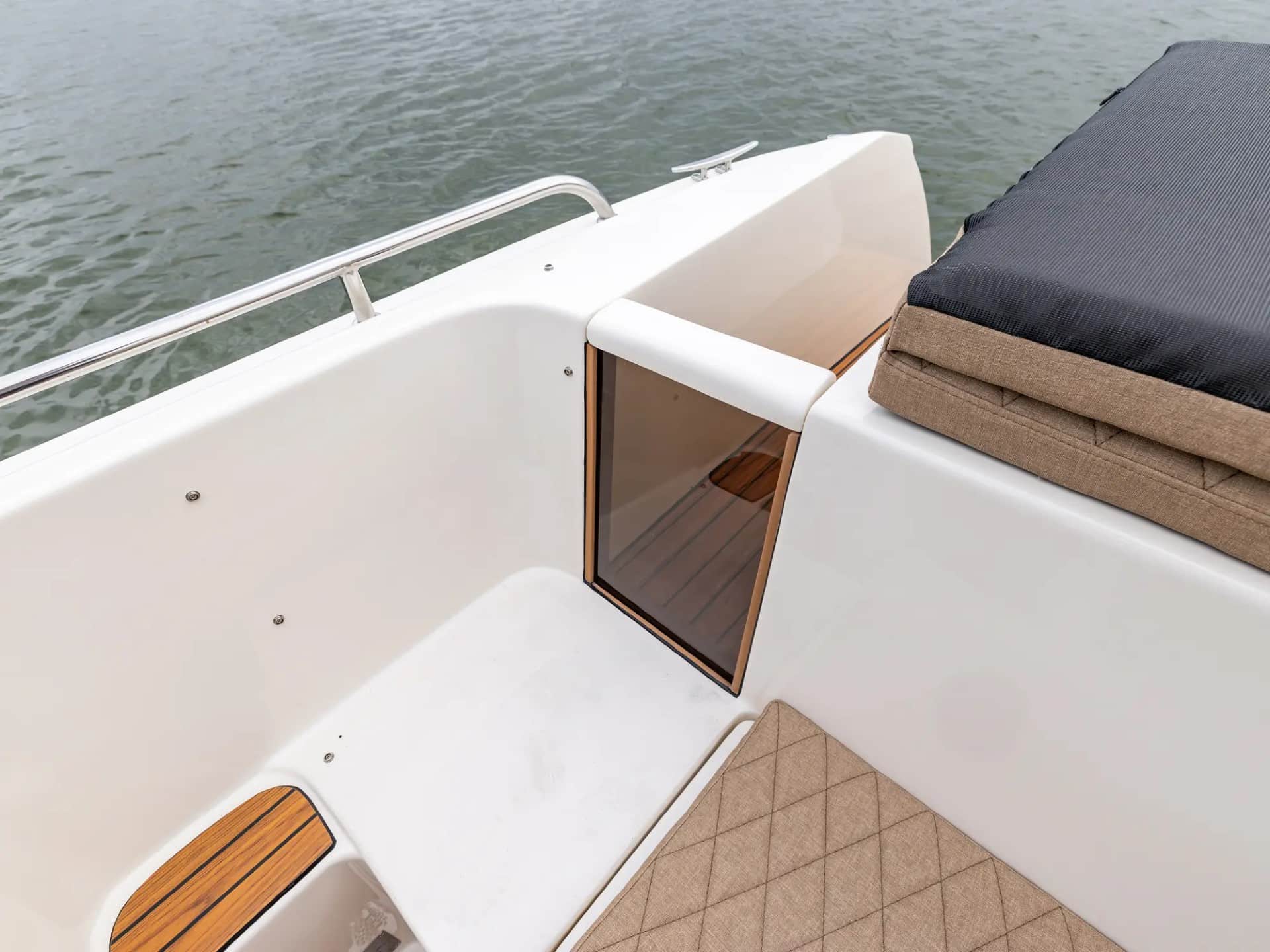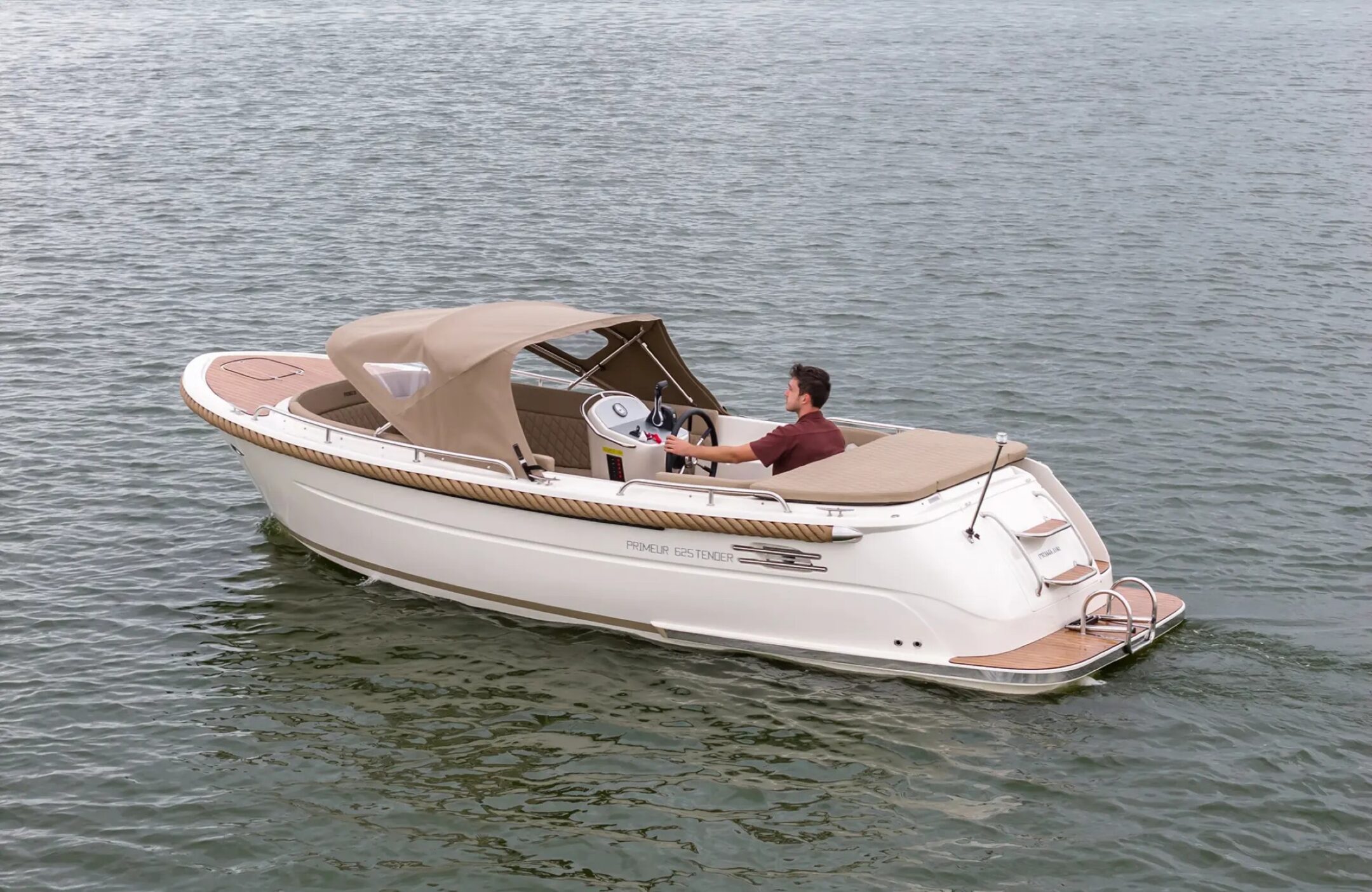 De Primeur 625 Tender is de grote broer van de populaire Primeur 615 Tender. Deze modellen delen hetzelfde snelvarende onderwaterschip én dezelfde luxe uitstraling, maar de 625 heeft één groot verschil: een open doorloop naar het zwemplateau. Dit zorgt voor extra gemak en comfort, vooral wanneer u vaak gaat zwemmen of eenvoudig van en aan boord wilt stappen.