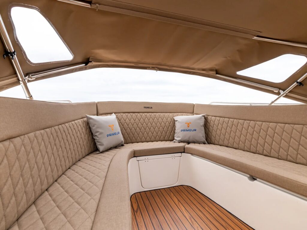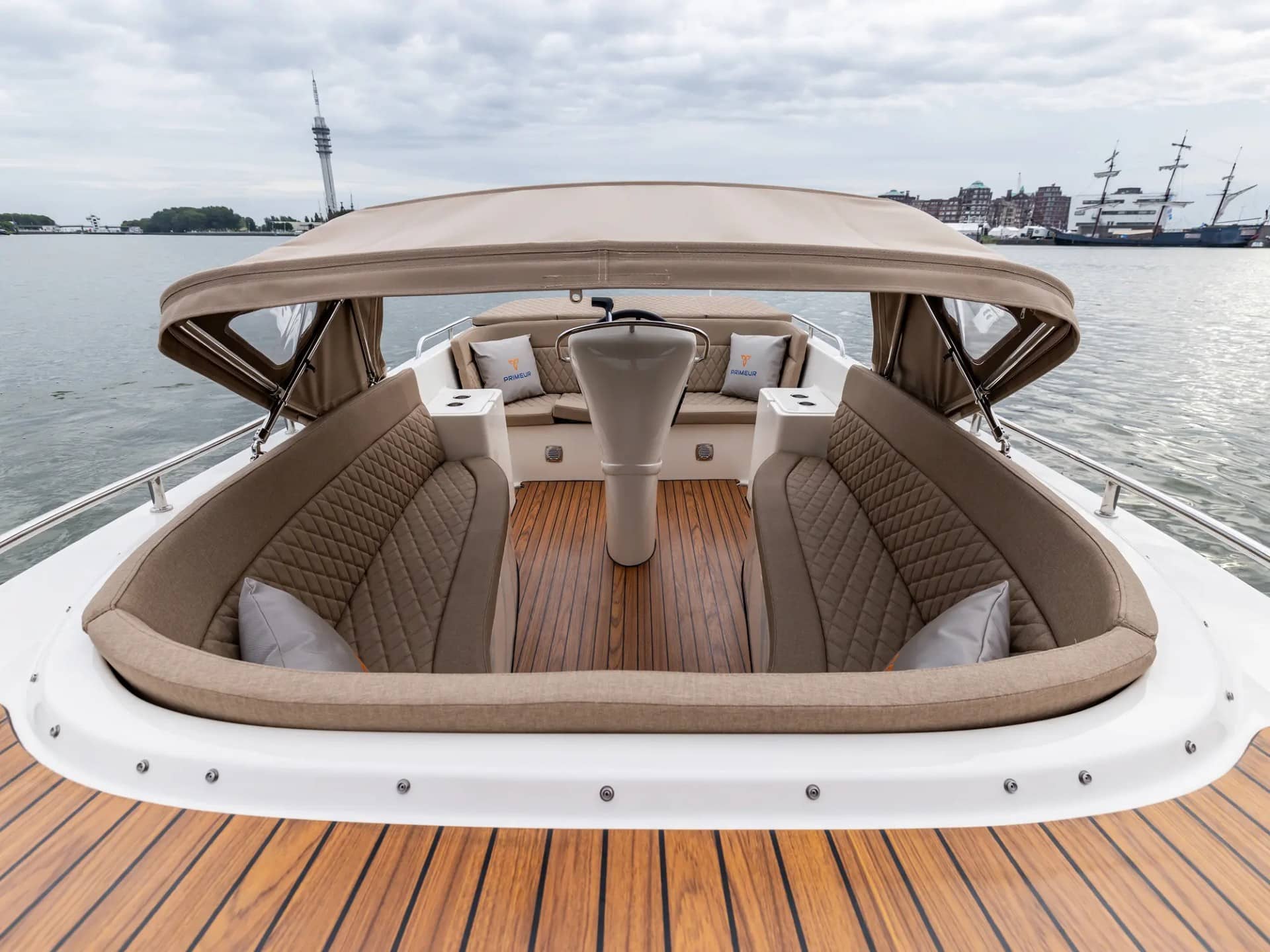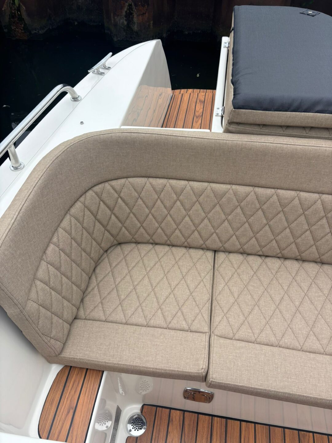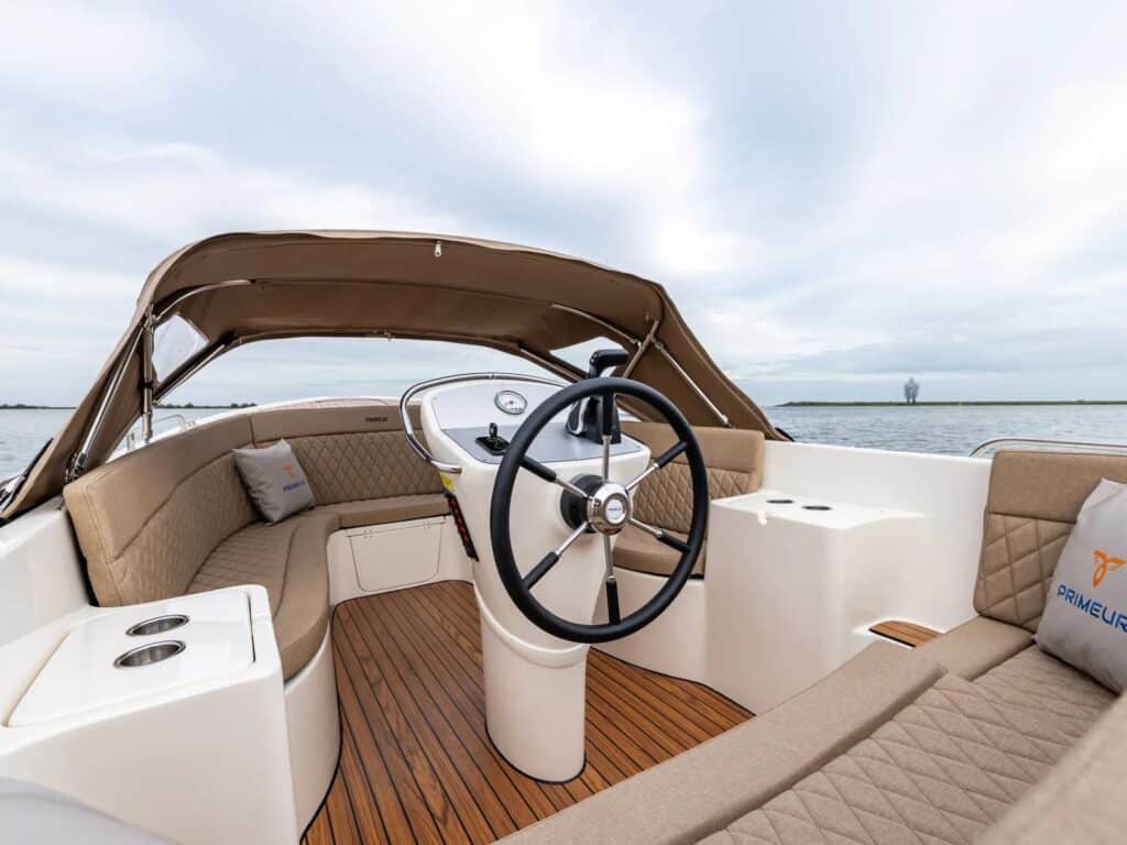 De Primeur 625 Tender is leverbaar in diverse kleurstellingen voor romp en bekleding. Standaard krijgt u de luxe Diamante bekleding, maar u kunt ook kiezen voor de gewatteerde ruiten uitvoering voor extra luxe. De teaklook vloer kan worden geüpgraded naar fin teak of topdeck voor een exclusieve uitstraling.