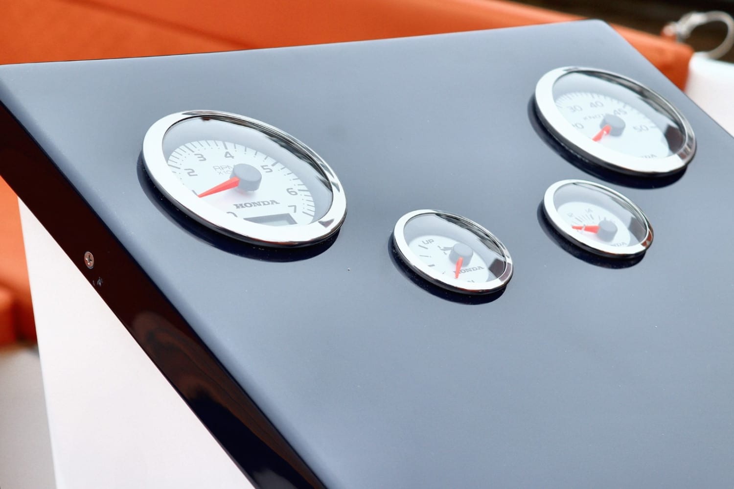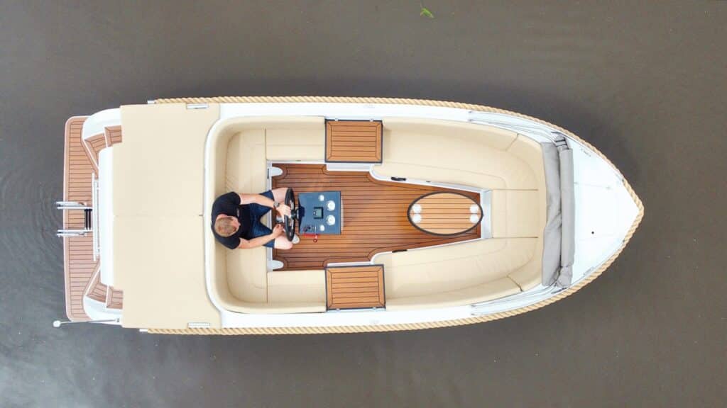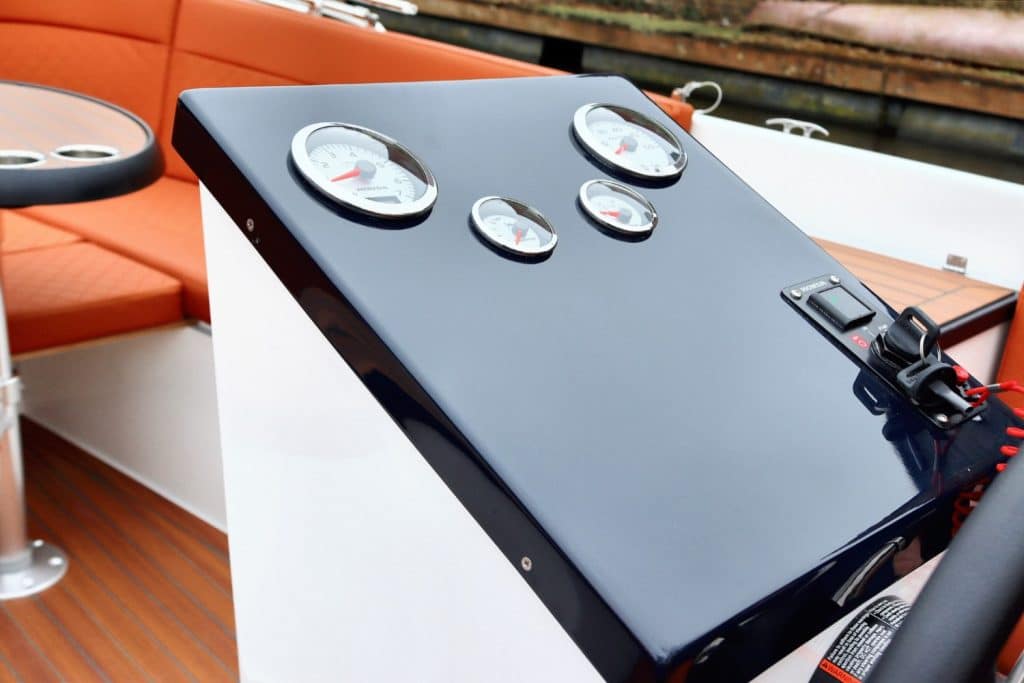 De stuurconsole is overzichtelijk en ergonomisch ontworpen, wat bijdraagt aan een intuïtieve en ontspannen vaarervaring. Alle instrumenten zijn gemakkelijk af te lezen, en de stuurpositie zorgt ervoor dat de schipper moeiteloos de controle behoudt, ongeacht de omstandigheden op het water.