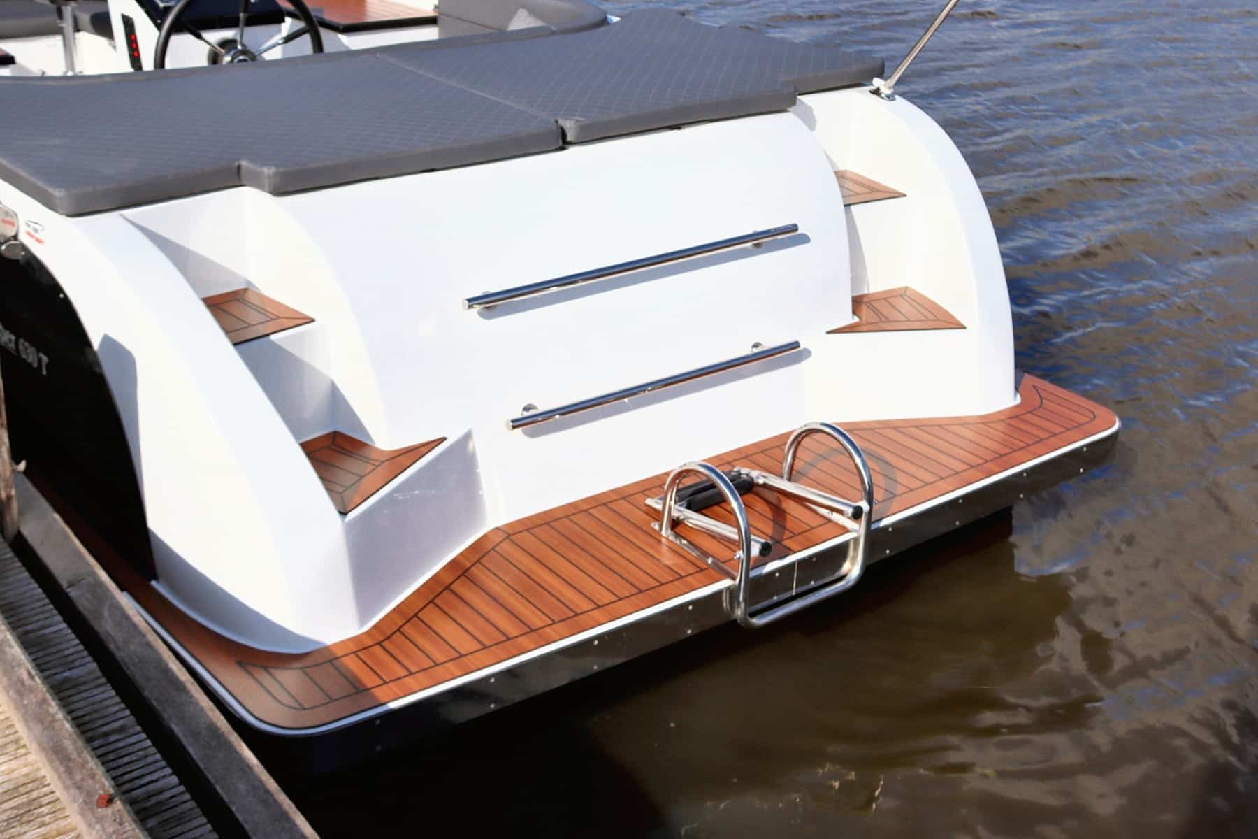 Daarnaast is de tender uitgerust met praktische voorzieningen zoals een zwemtrap en optioneel een zonnedek, wat de boot ideaal maakt voor een dagje uit op het water met het gezin.