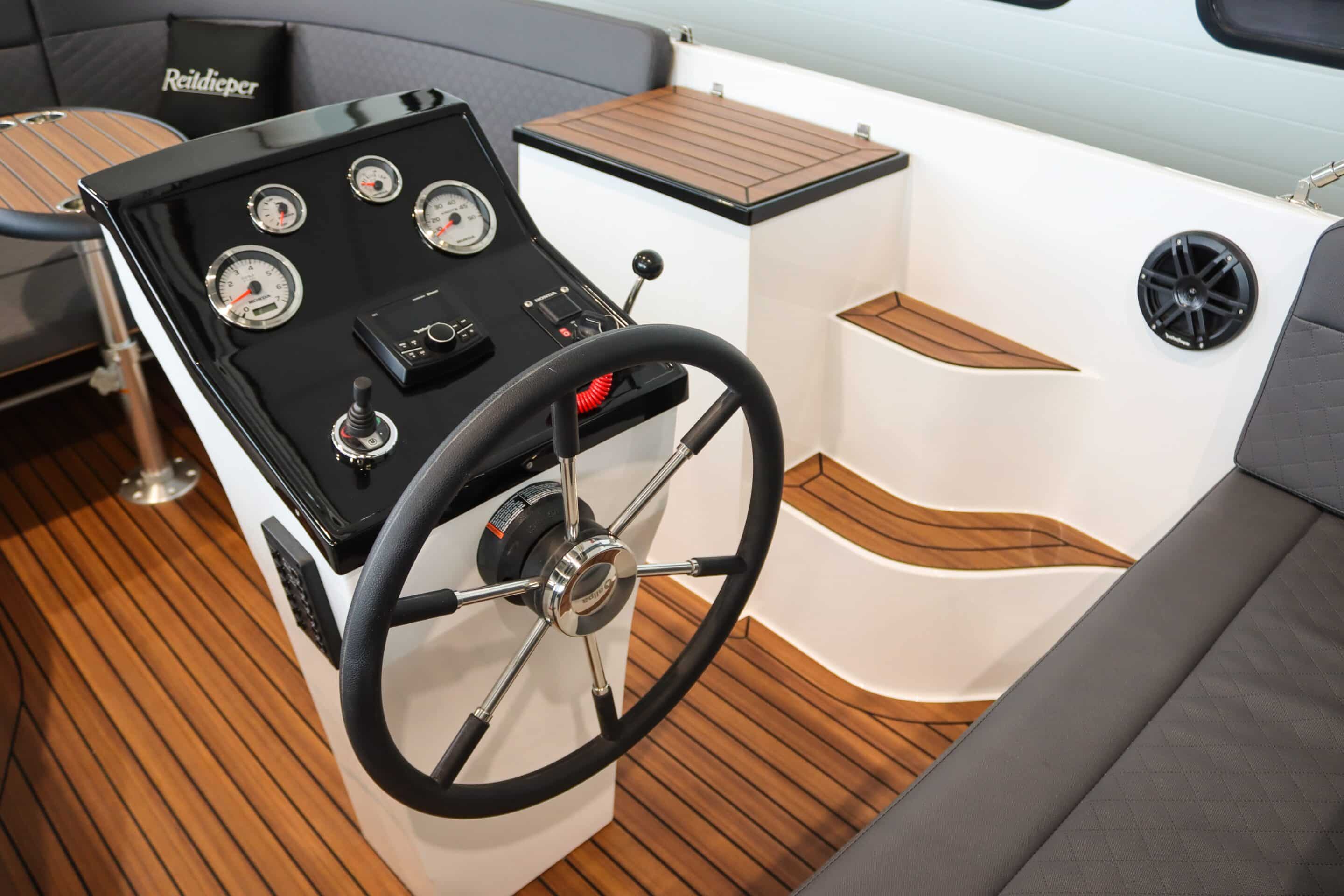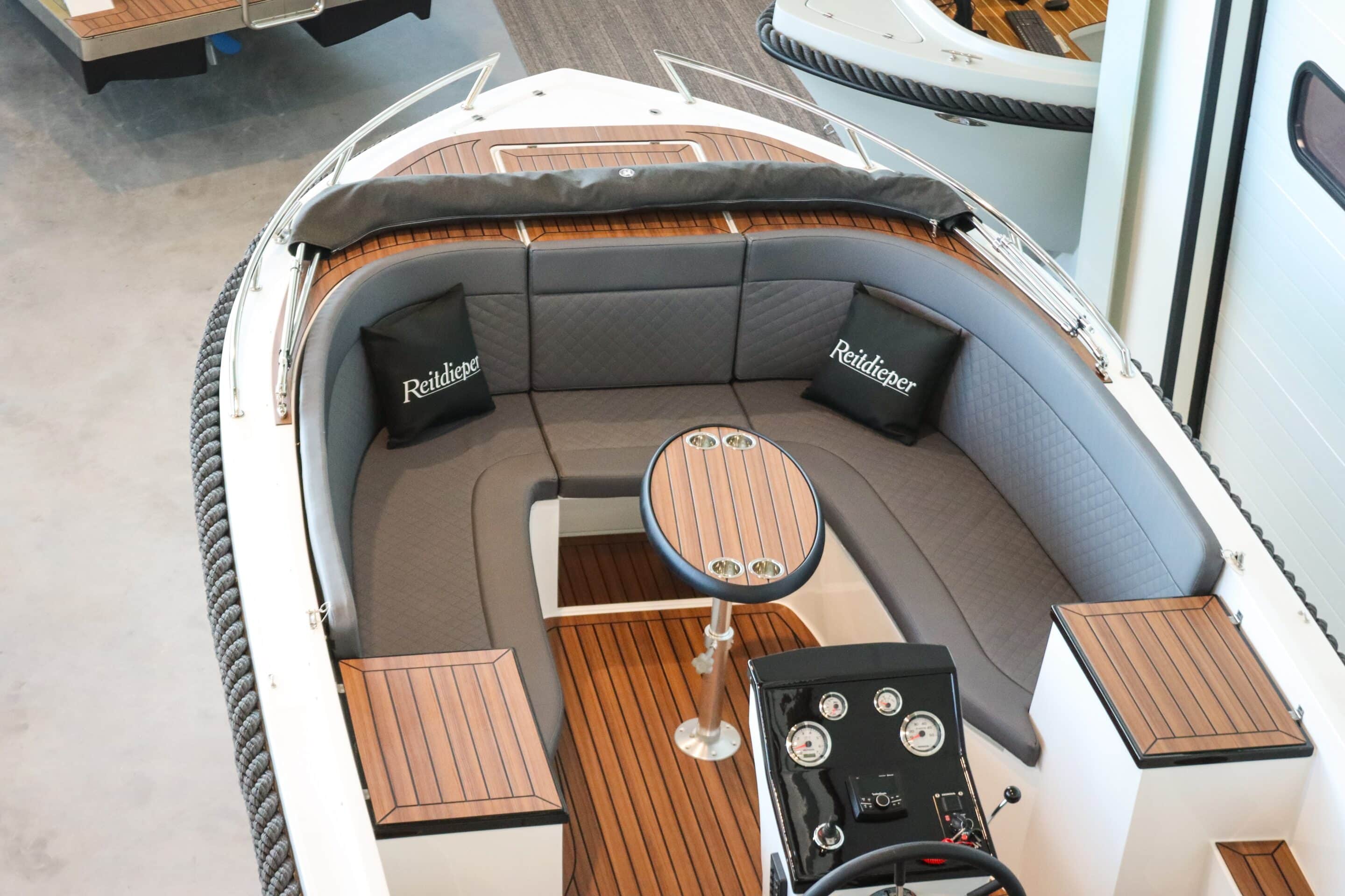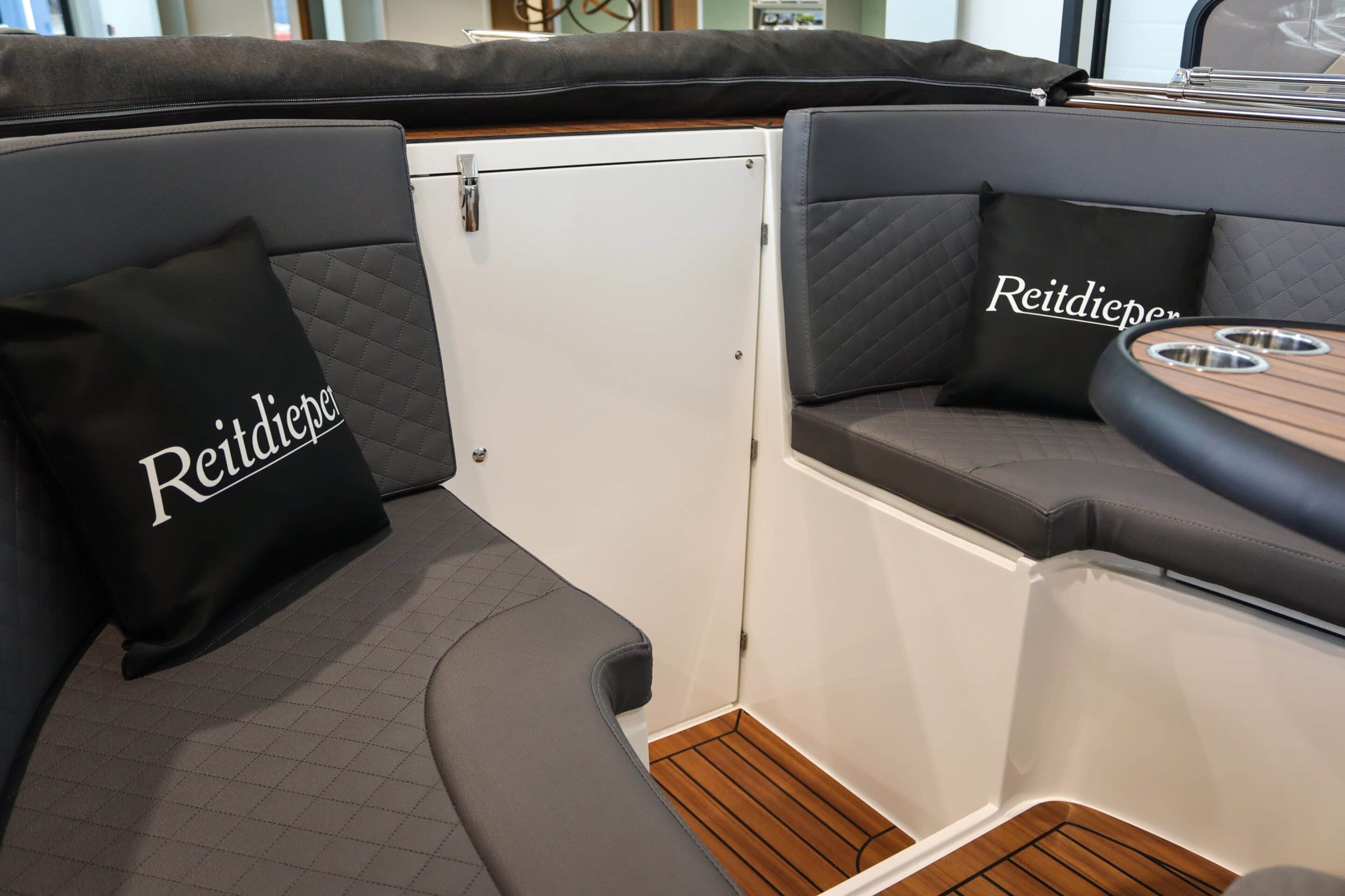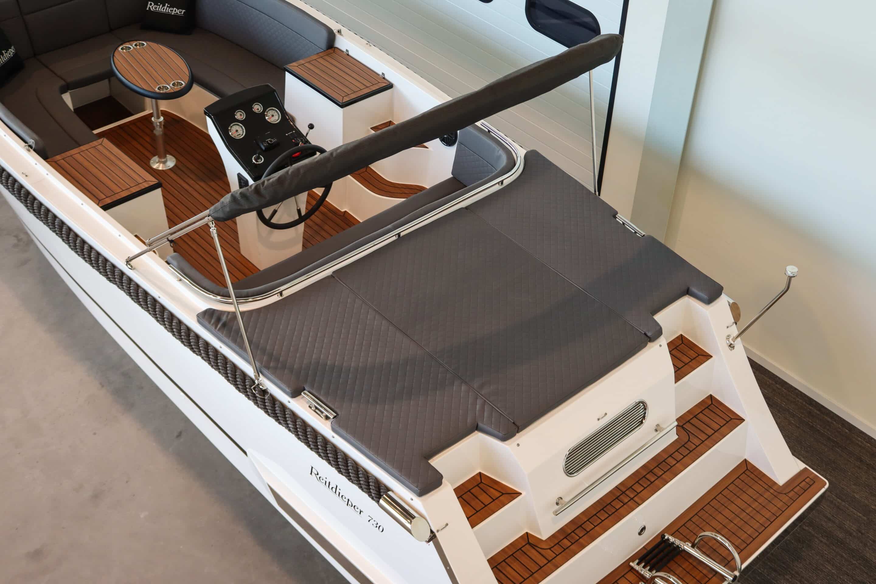 De Reitdieper 730 is leverbaar in diverse kleurstellingen voor zowel de romp als de binnenzijde. Ook kunt u kiezen uit verschillende soorten bekleding en afwerking. Zo stelt u de boot volledig naar eigen wens samen.