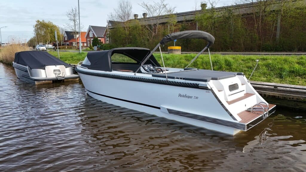 De Reitdieper 730 is ontworpen voor motoren tot en met 150 pk. Zodat je wel een topsnelheid van 60 Km/h kan bereiken. Maar als je meer van het rustige varen bent is een 30 pk motor ook een goede vaarbewijsvrije mogelijkheid.